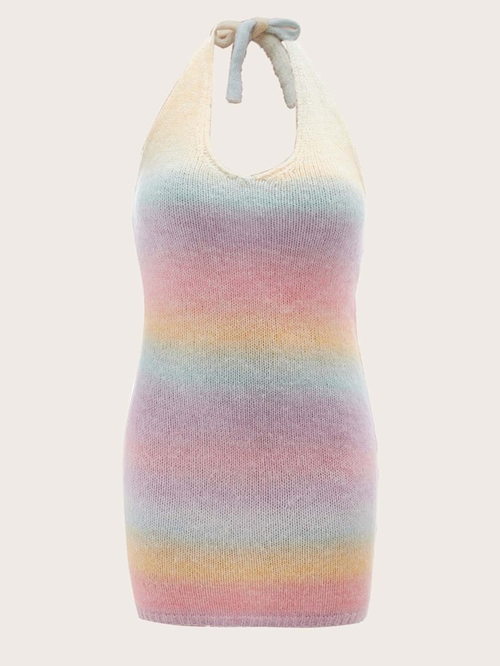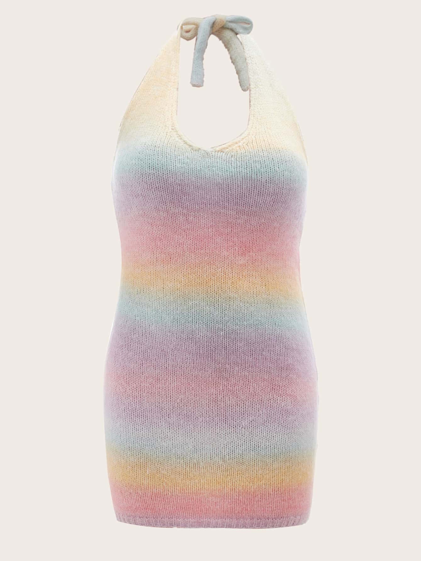 مقاس كبير فستان صوفي ألوان متدرجة رسن عنق