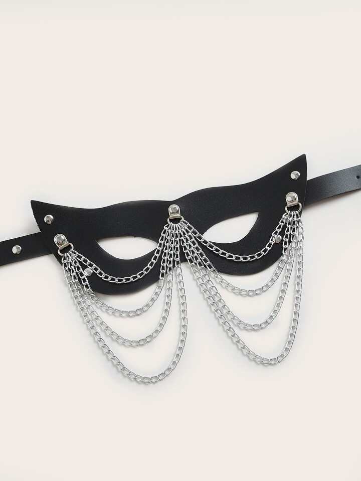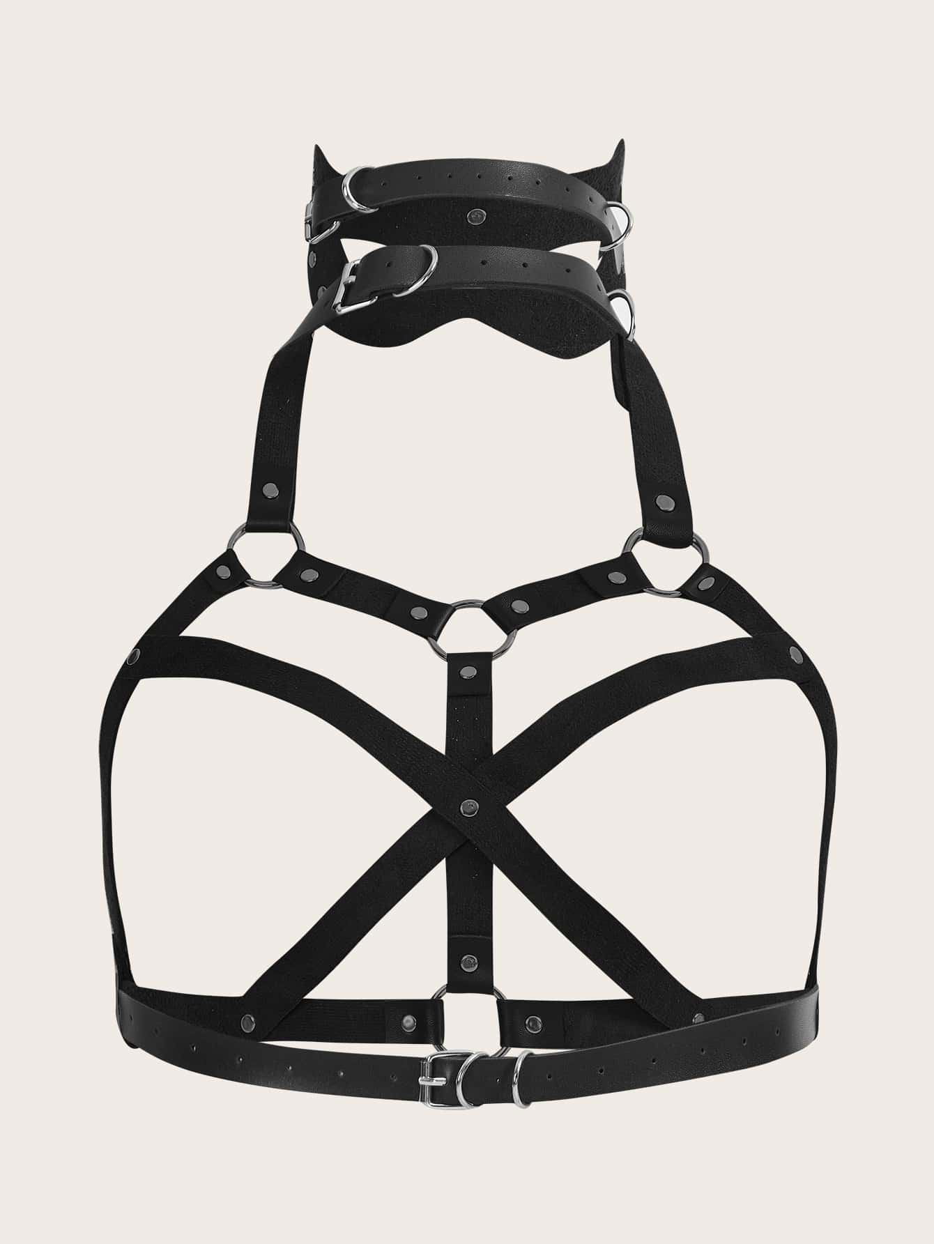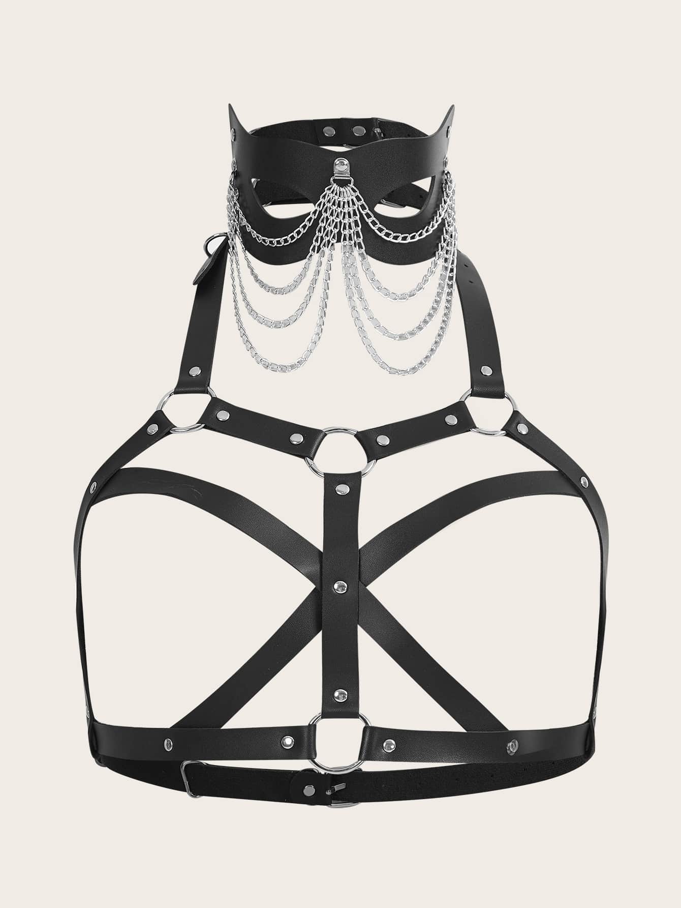 حمالة الصدر سرج جلد صناعي بحلقة شكل O و ديكور سلسلة مقاس كبير