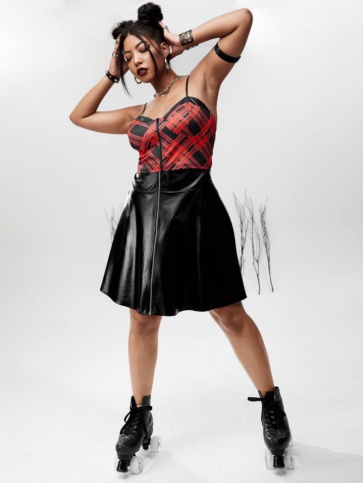 تنورة مقاس كبير بسستة بحلقة دائري جلد صناعي
