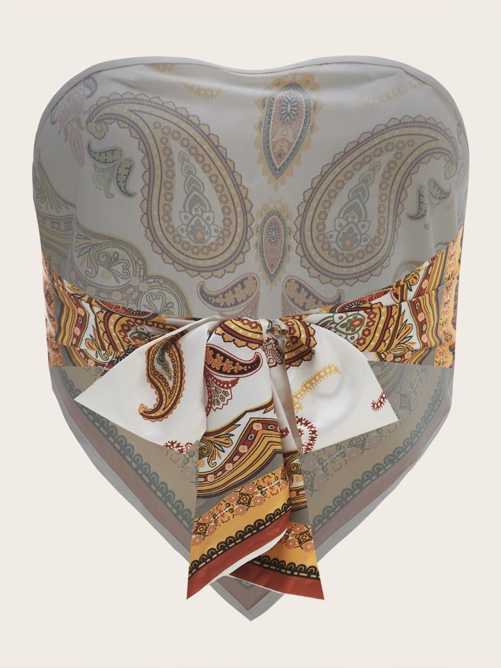 لباس علوي انبوب مكشوف الظهر بربطة بطباعة بيزلي مقاس كبير