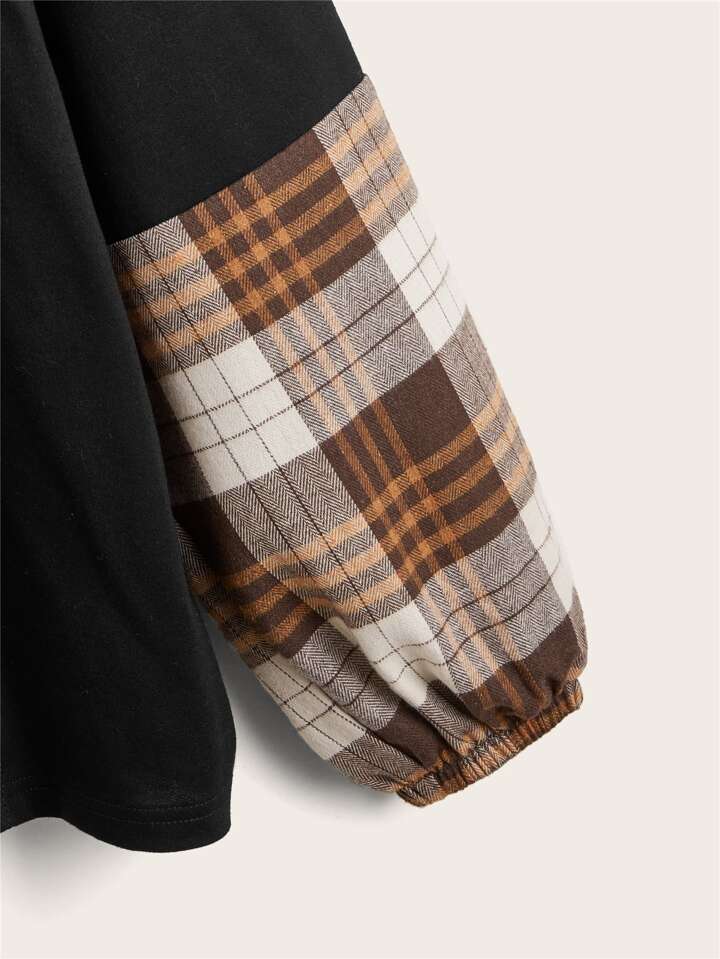 هودي بجيب الكنغر بطباعة تعبير ومربع النقش مقاس كبير