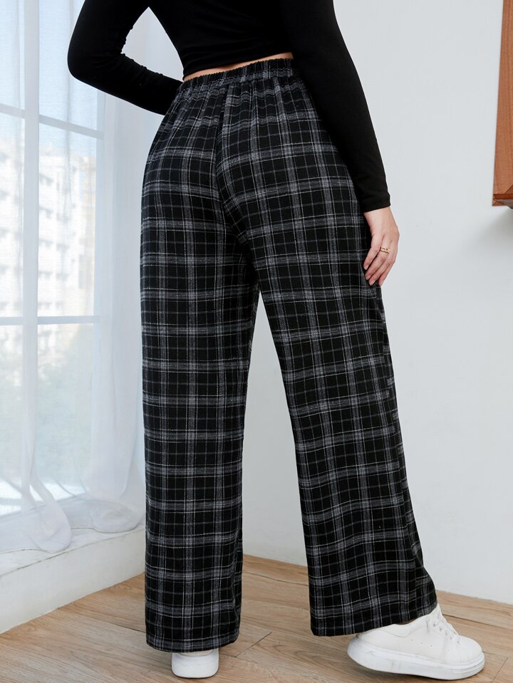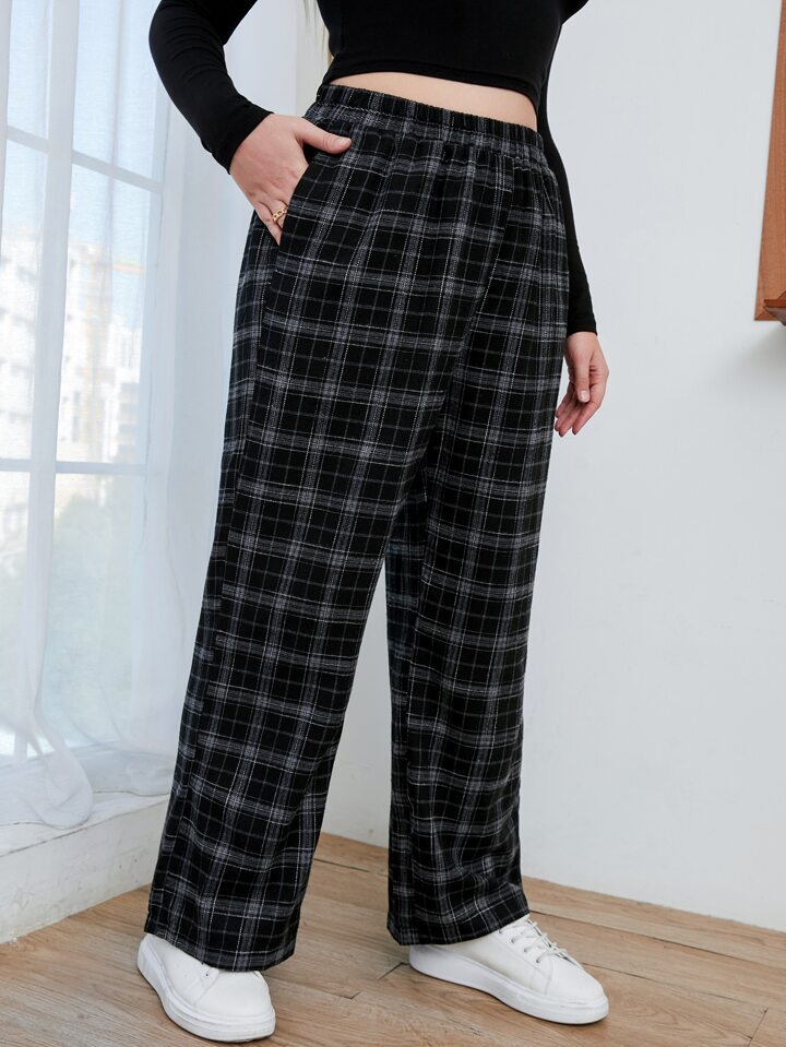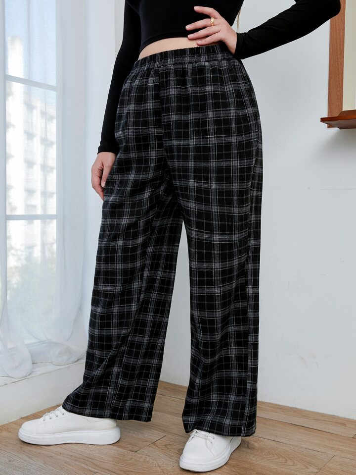بنطلون بخصر مطاط مربع النقش مقاس كبير