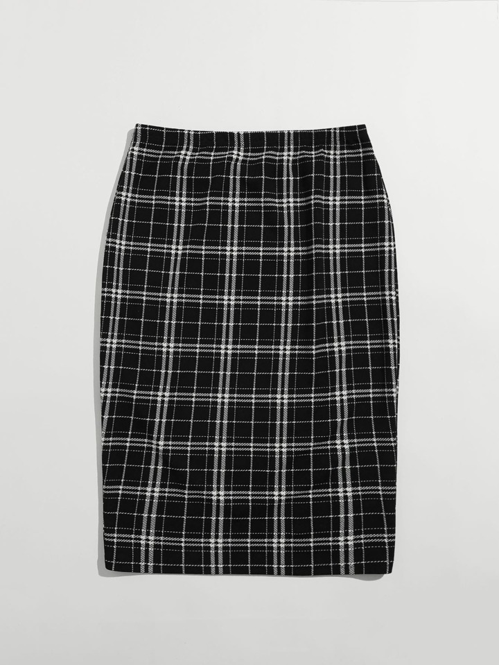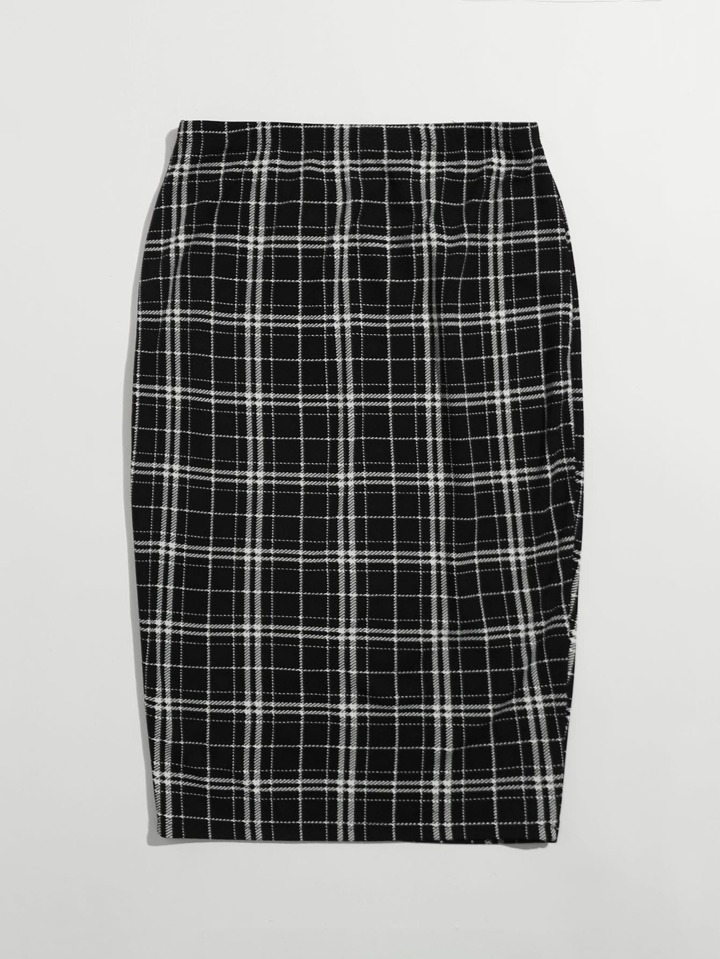 تنورة بخصر مطاطي مربع النقش مقاس كبير