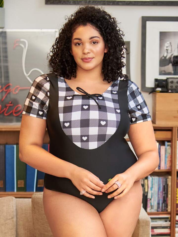 مقاس كبير ملابس سباحة قطعة واحدة مربعات ملونة نمط القلب