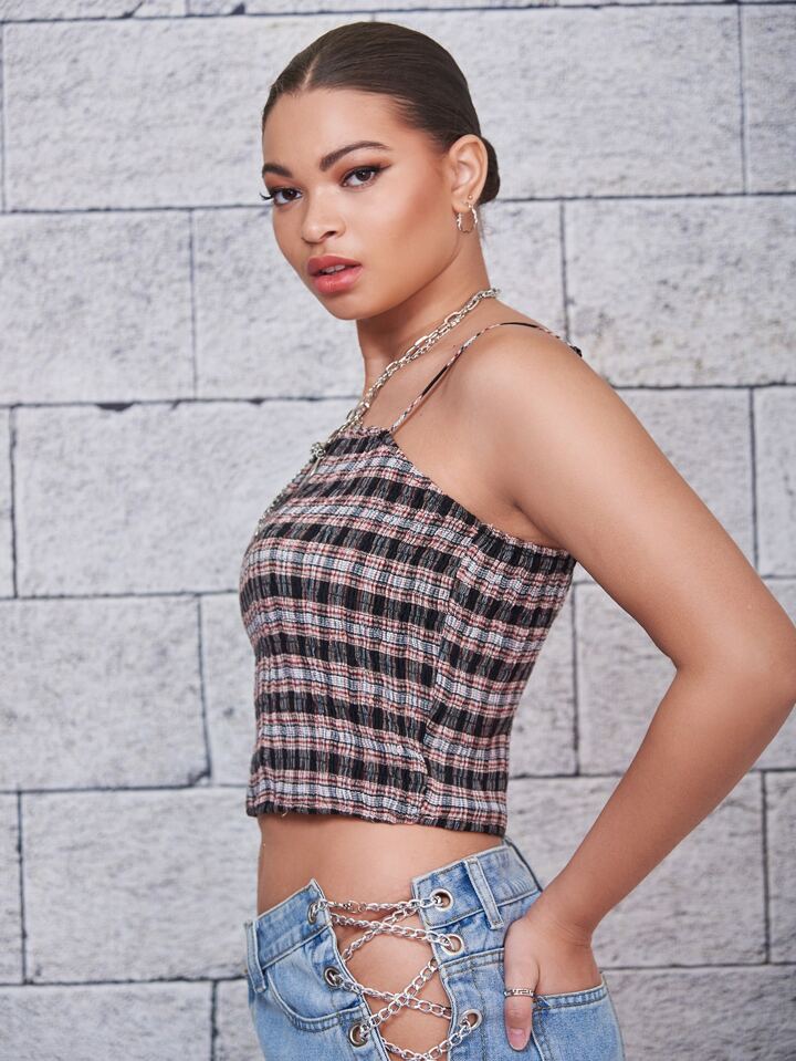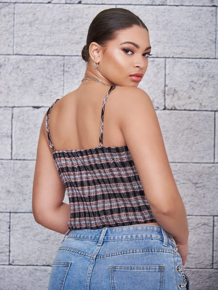 مقاس كبير لباس علوي كامي طباعة مربع النقش