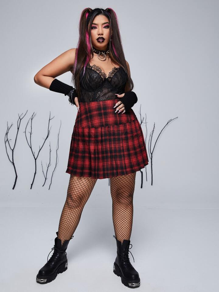مقاس كبير تنورة طباعة مربع النقش شريط خصر واسع