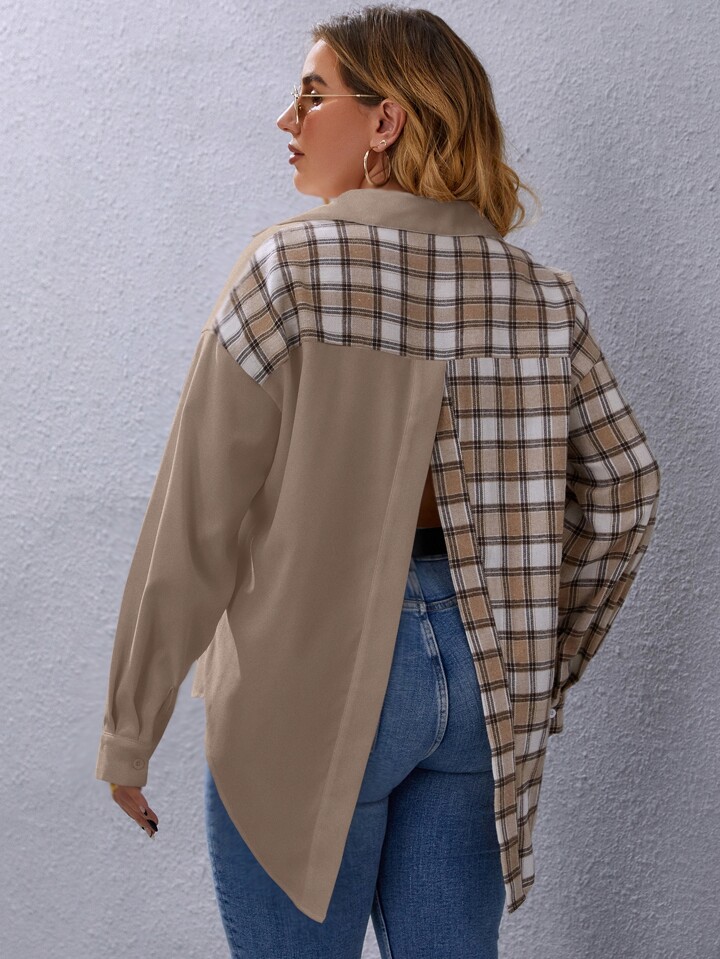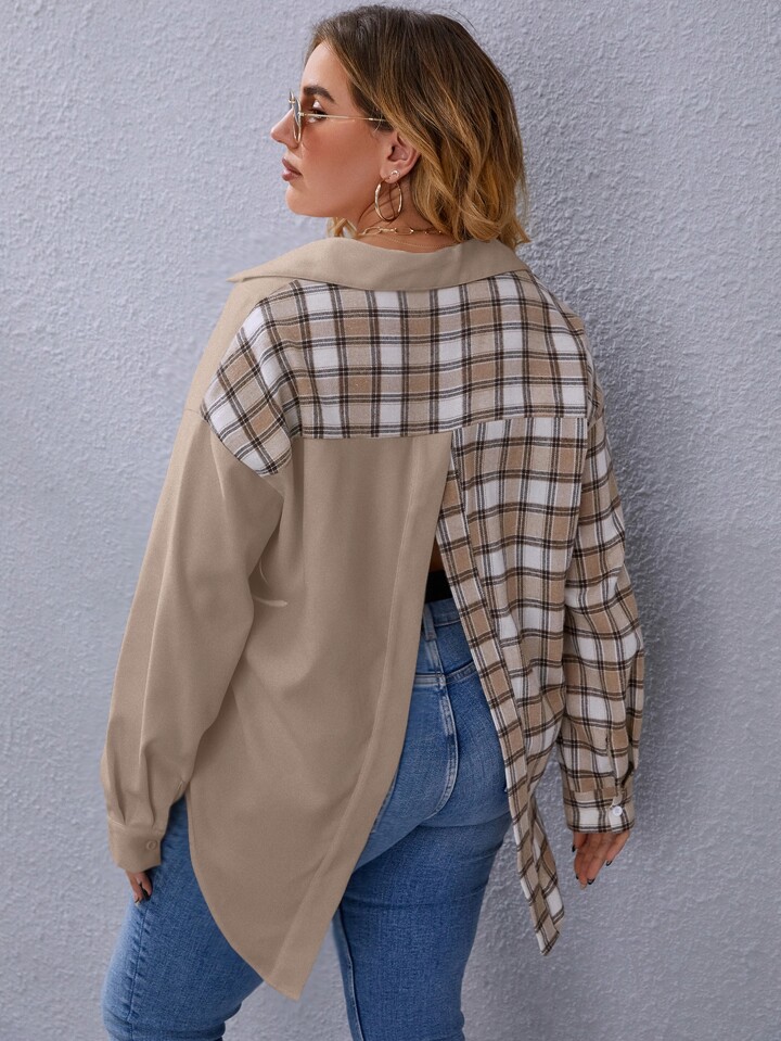 قميص مربعات ملونة فتحات شق خلفي مقاس كبير