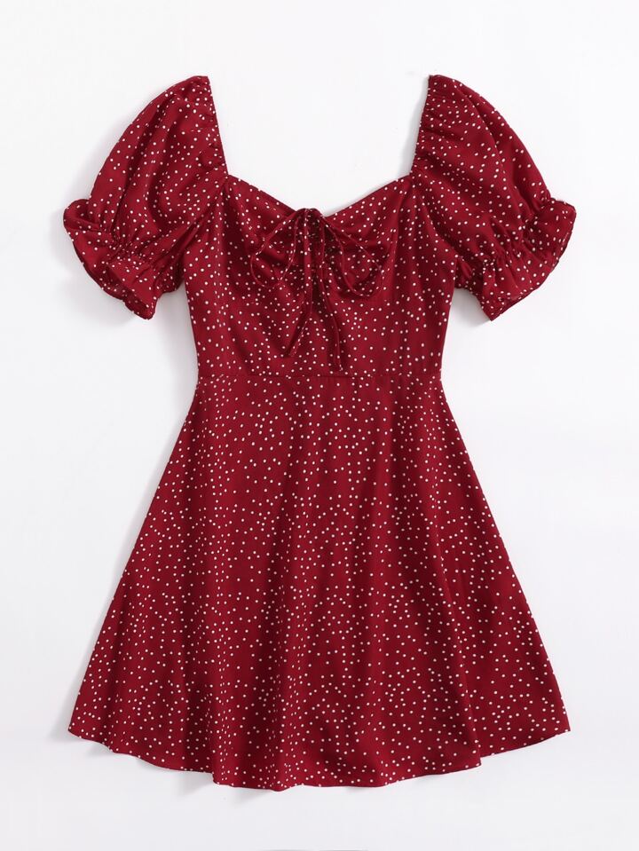 فستان صيفي بوهيمي مع أكمام فضفاضة مزخرفة بالنقاط