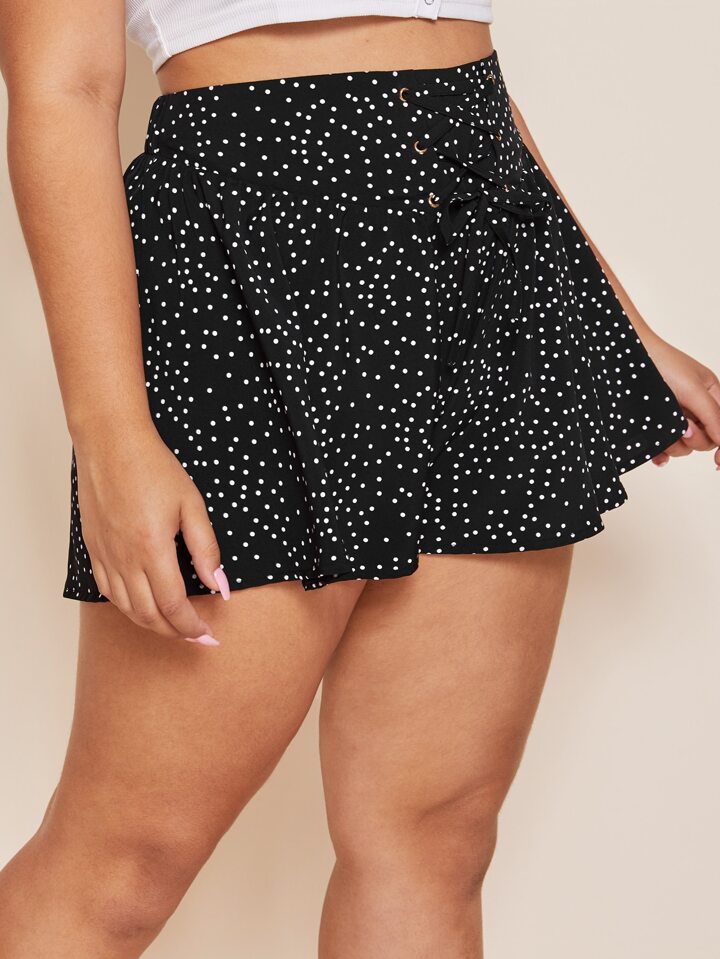 سروال قصير مقاس كبير برباط امامي وبنقاط البولكا