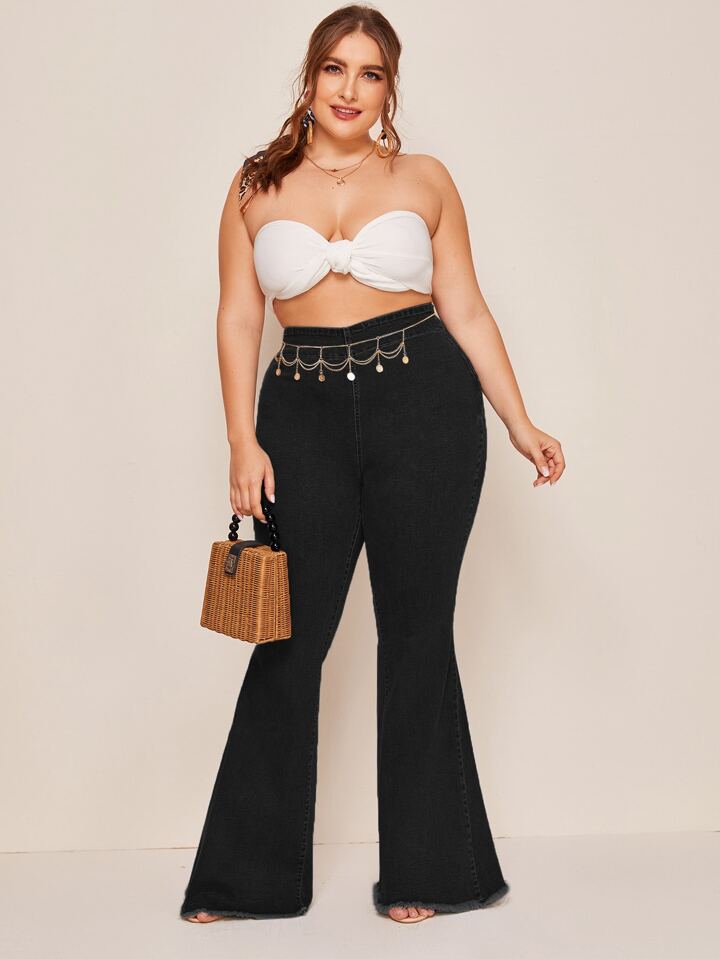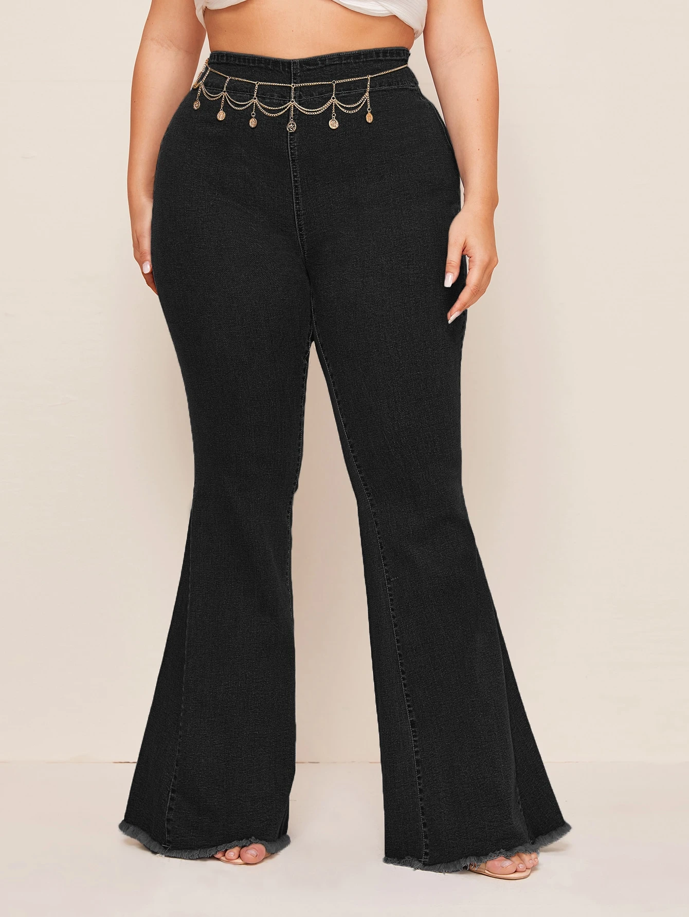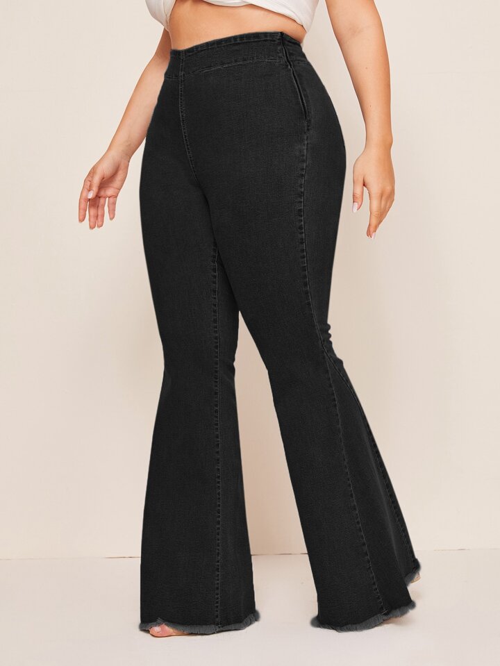 بنطلون جينز مقاس كبير بساق مزهر بحافة مسطح بدون سلسلة