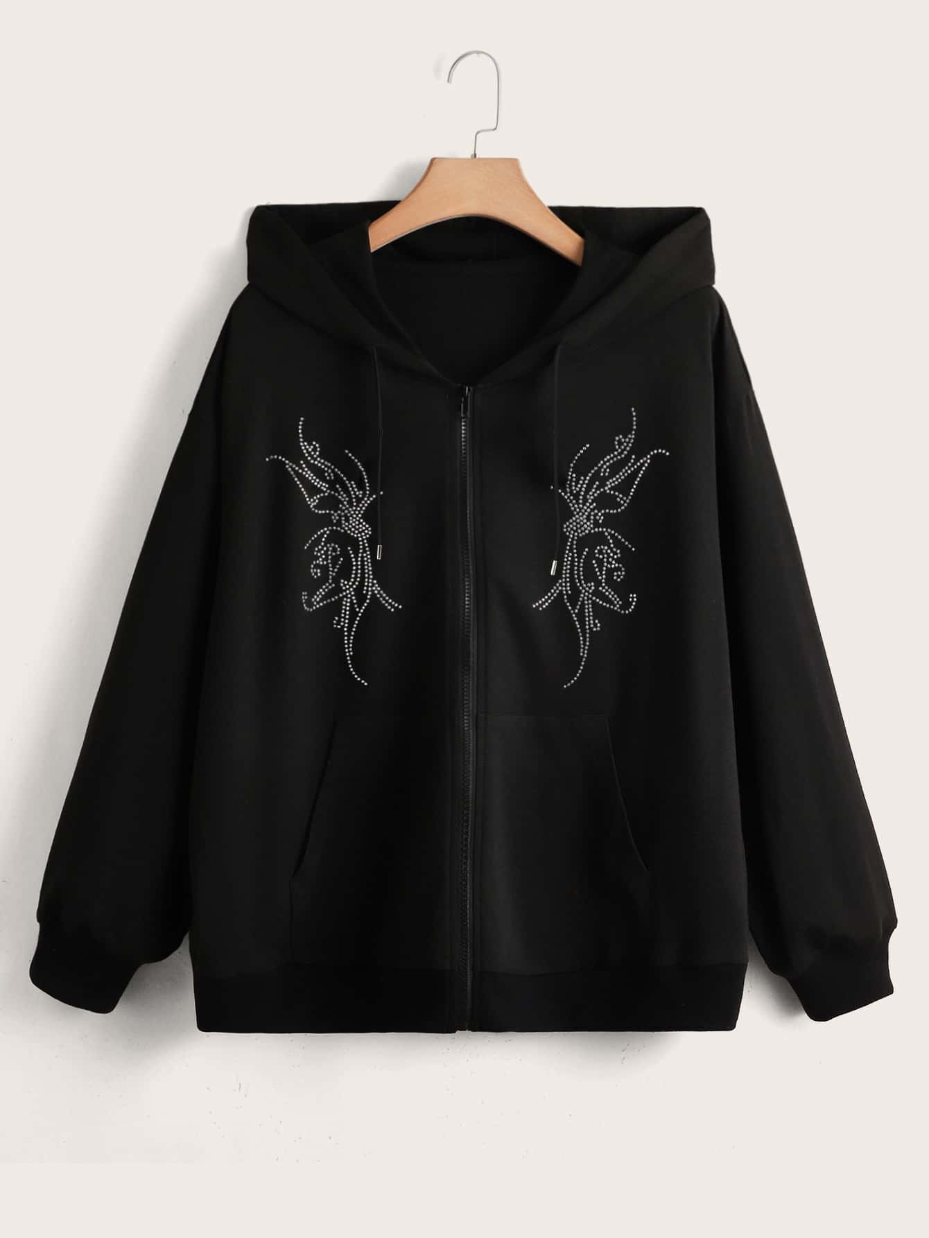 مقاس كبير هودي حجر الراين سستة منخفض الاكتاف