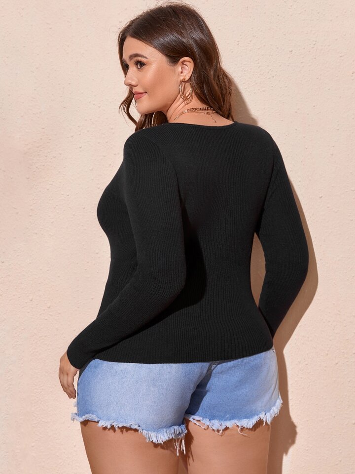 مقاس كبير كنزة صوف محبوك مضلع ياقة عميق