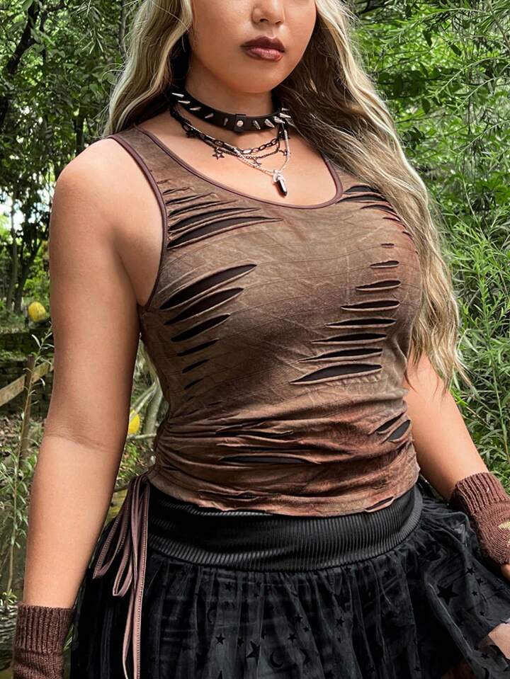 لباس علوي تانك ممزق رباط جانبي مقاس كبير
