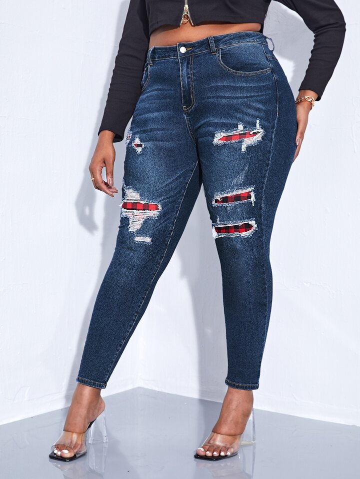 جينز نحيل ممزق مقاس كبير