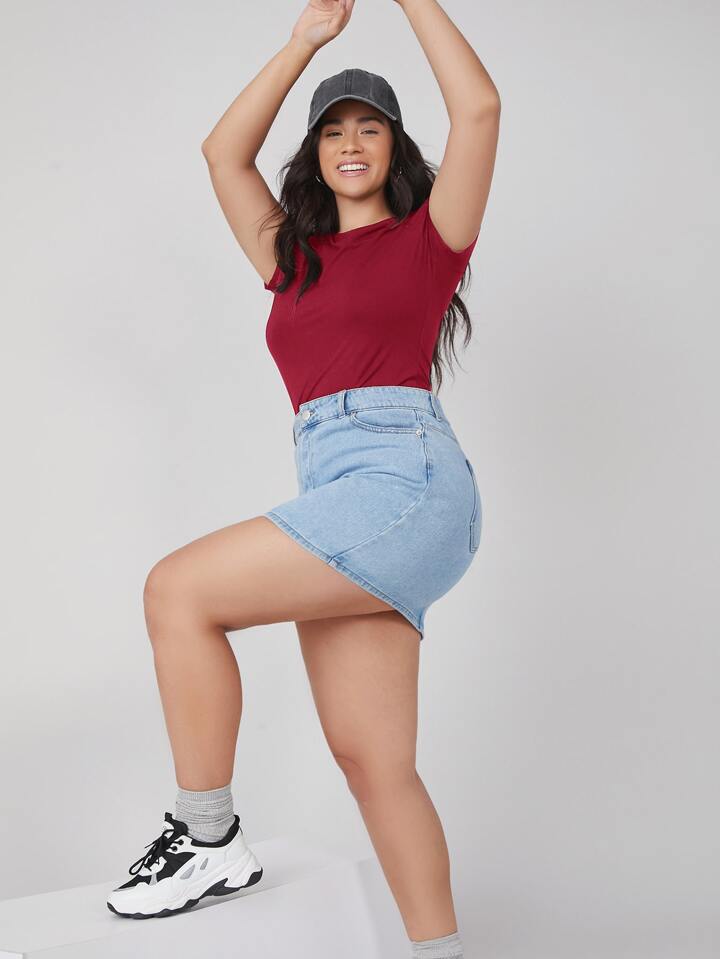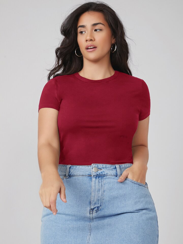 تي شيرت أساسي رقبة دائرية بحجم كبير ضيق