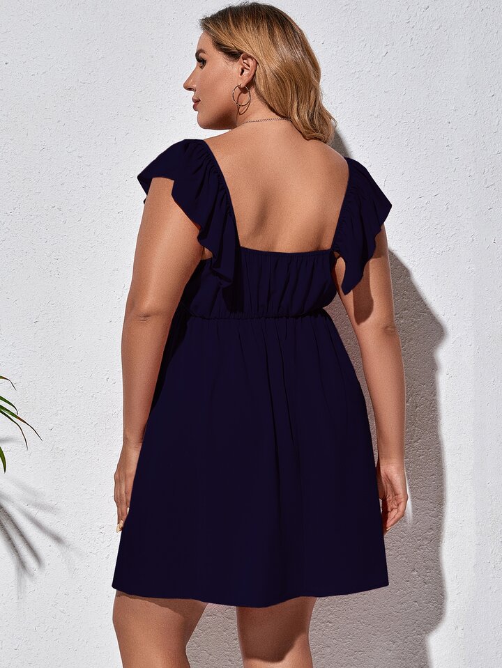 فستان بخط A عاري الظهر مكشكش مقاس كبير