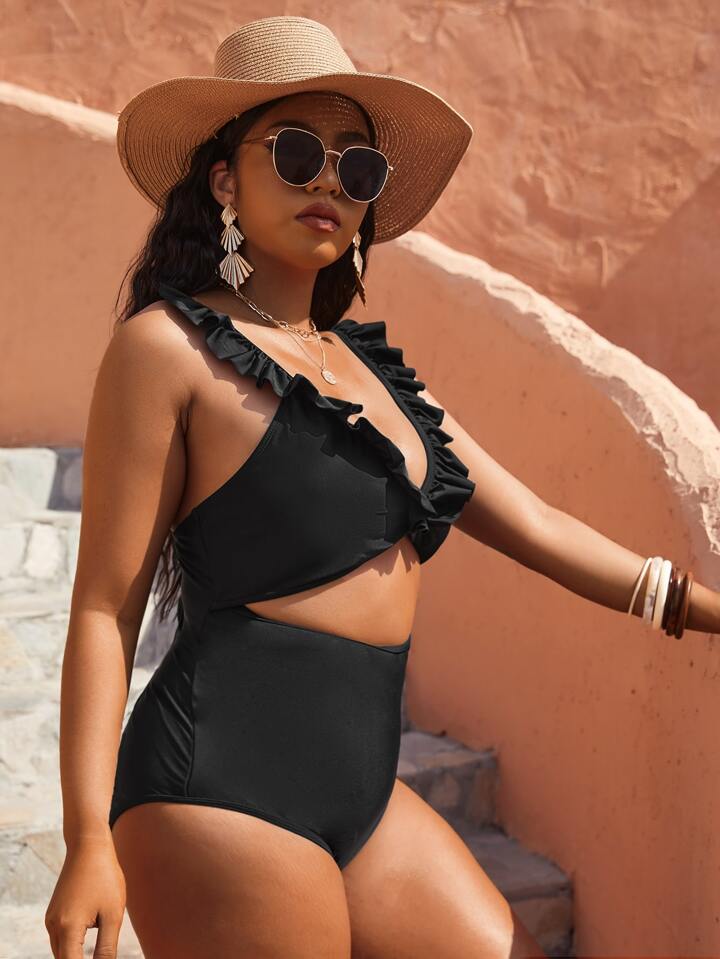 بدلة سباحة قطعة واحدة مع كشكشة وفتحات، للصيف وعطلات الشاطئ