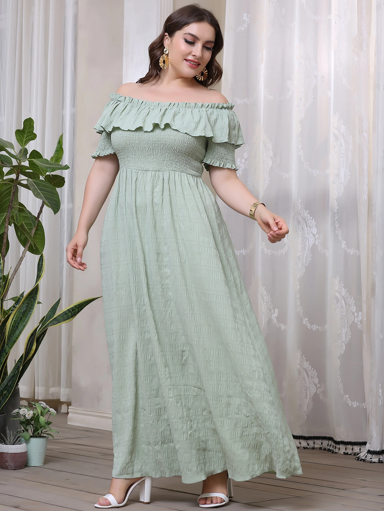 فستان باردو بصدر مدرز مقلم بكشكش مقاس كبير