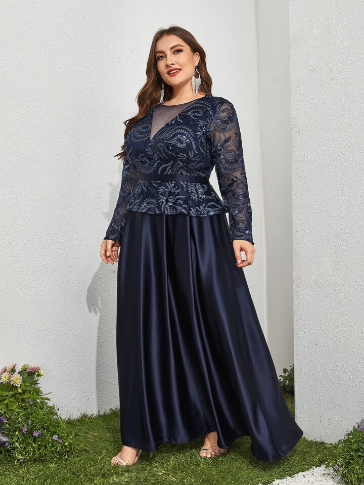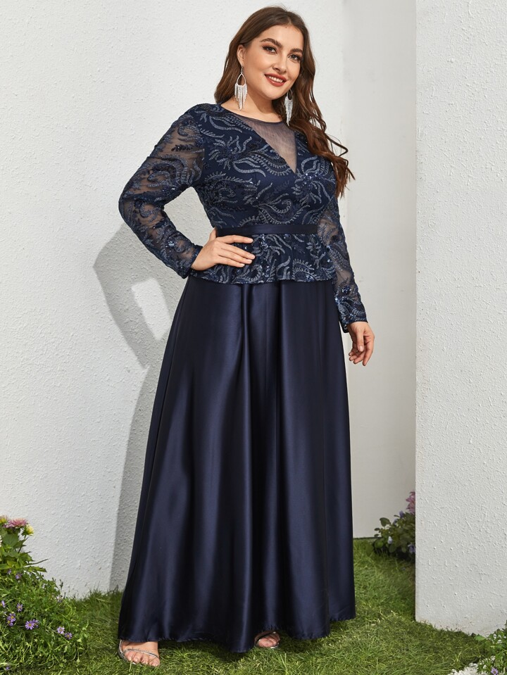 فستان مع لوحة من الشبك مطرز بالترتر، أنيق بأكمام طويلة للسهرة الرسمية، حفلات الزفاف والضيوف، مناسب للتخرج والعشاء