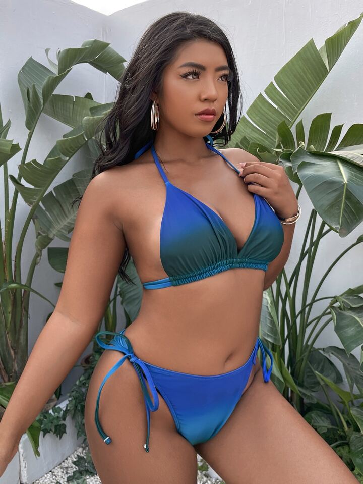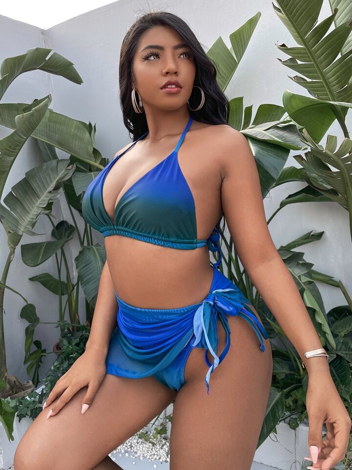 3حزمات مايوه ثلاثي بنقشة أومبري وتنورة شاطئية للحجم الكبير، أساسيات الشاطئ الصيفية