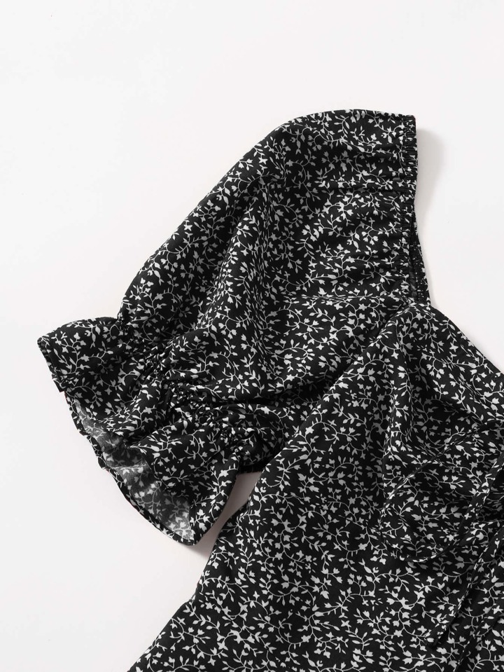 فستان مقاسات كبيرة بوهو من ألياف رديئة الجودة بأكمام منفوخة وسحاب، طباعة اجمالية، للصيف