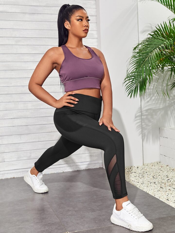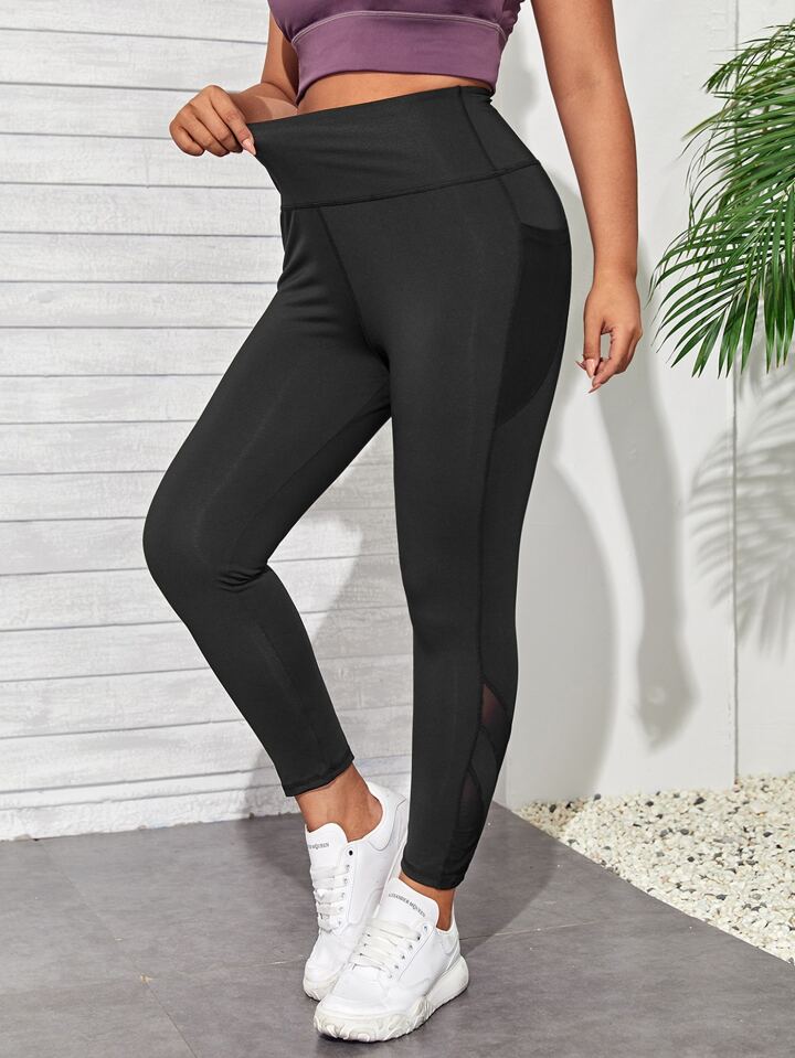 سروال رياضي مقاس كبير من الشبك المتباين مع جيب للهاتف، بنطلون نسائي للرياضة اليوغا