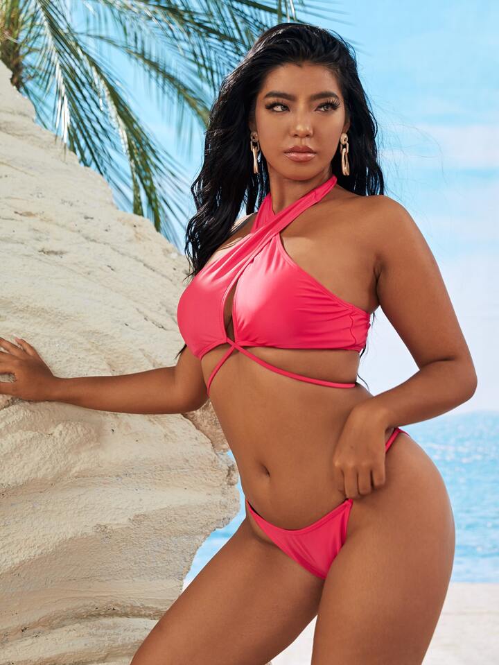 مجموعة بكيني مقصوصة متقاطعة مقاس كبير للشاطئ الصيفي