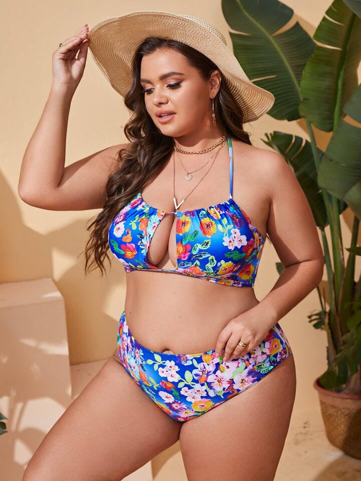 مجموعة بيكيني مطبوعة بأزهار بمقاس زائد لصيف الشاطئ