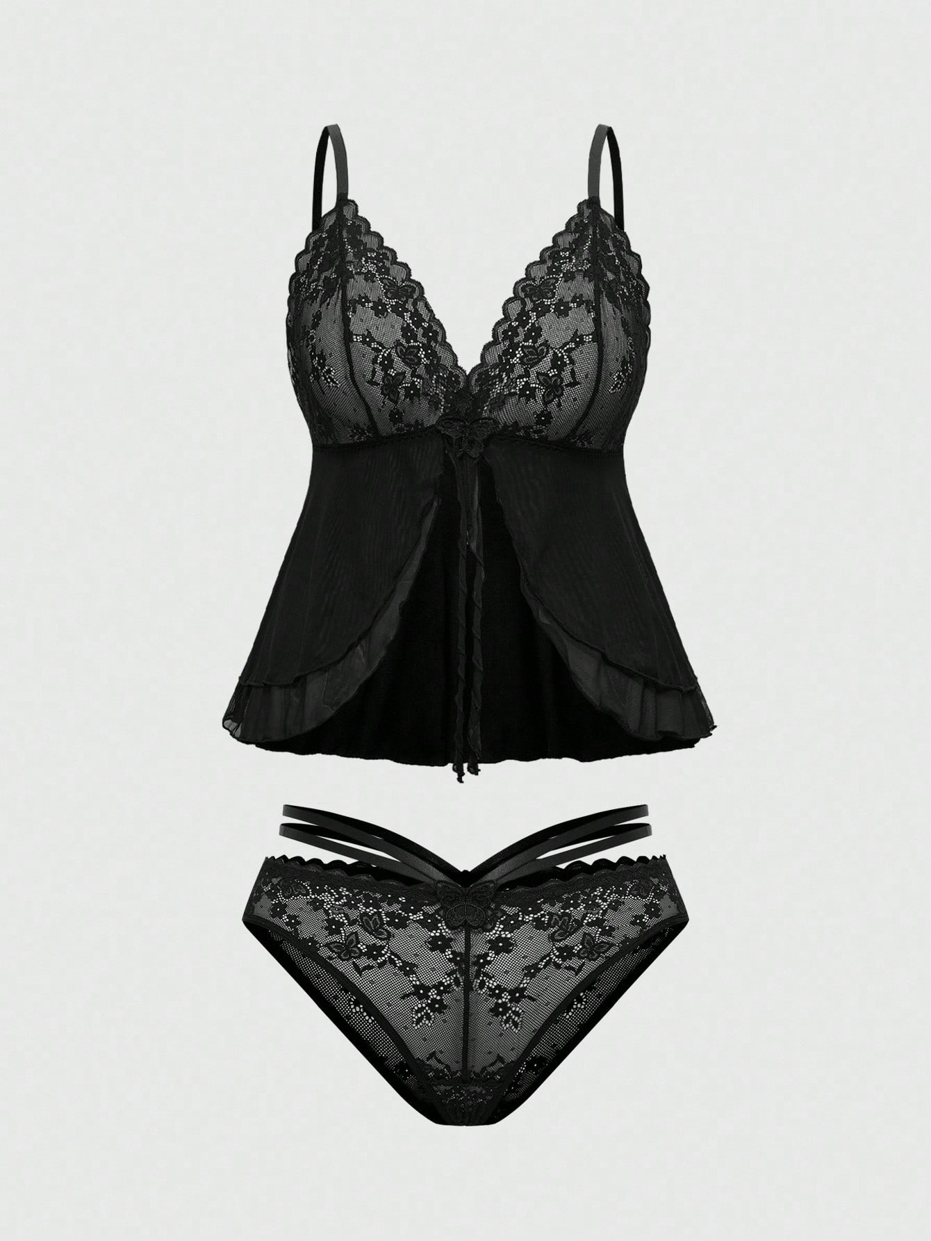Goth ملابس داخلية طقم سراويل شاملة الحجم مطرزة بالدانتيل الشبكي بدون سلك