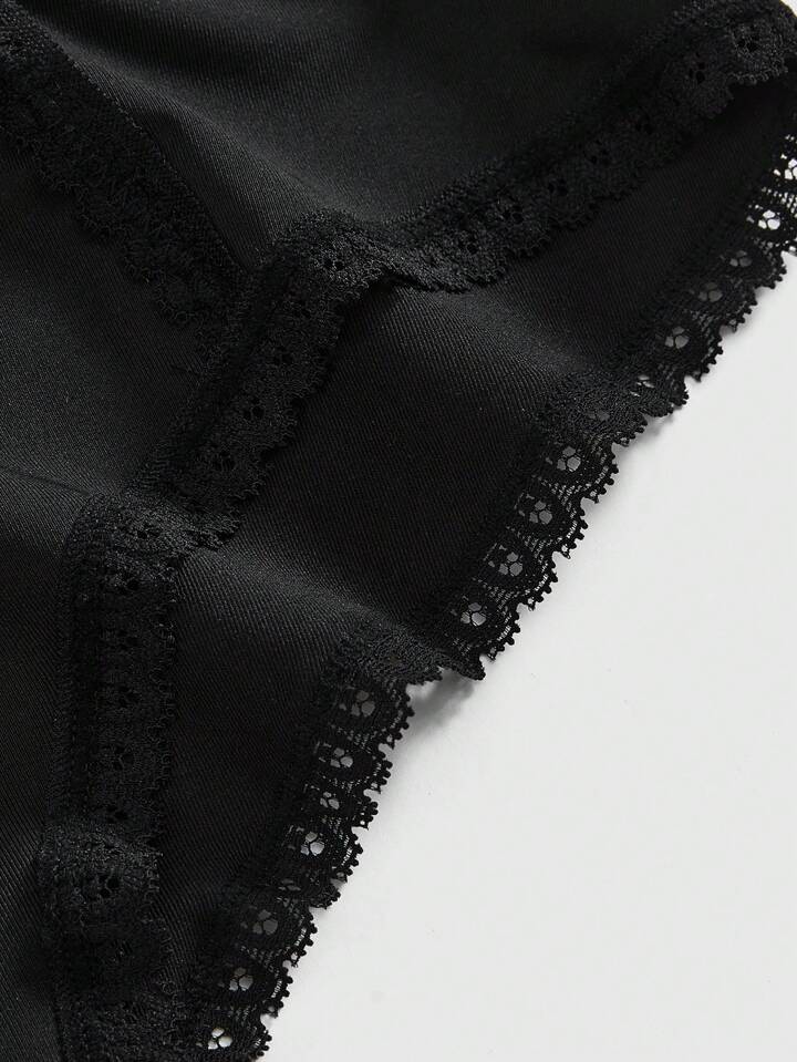 Goth طقم ملابس داخلية مكون من 3 قطع للمقاسات الكبيرة: قميص داخلي دانتيل تباين رومانسي جوثي، سجادة صدرية ،وسروال مزين بفيونكة