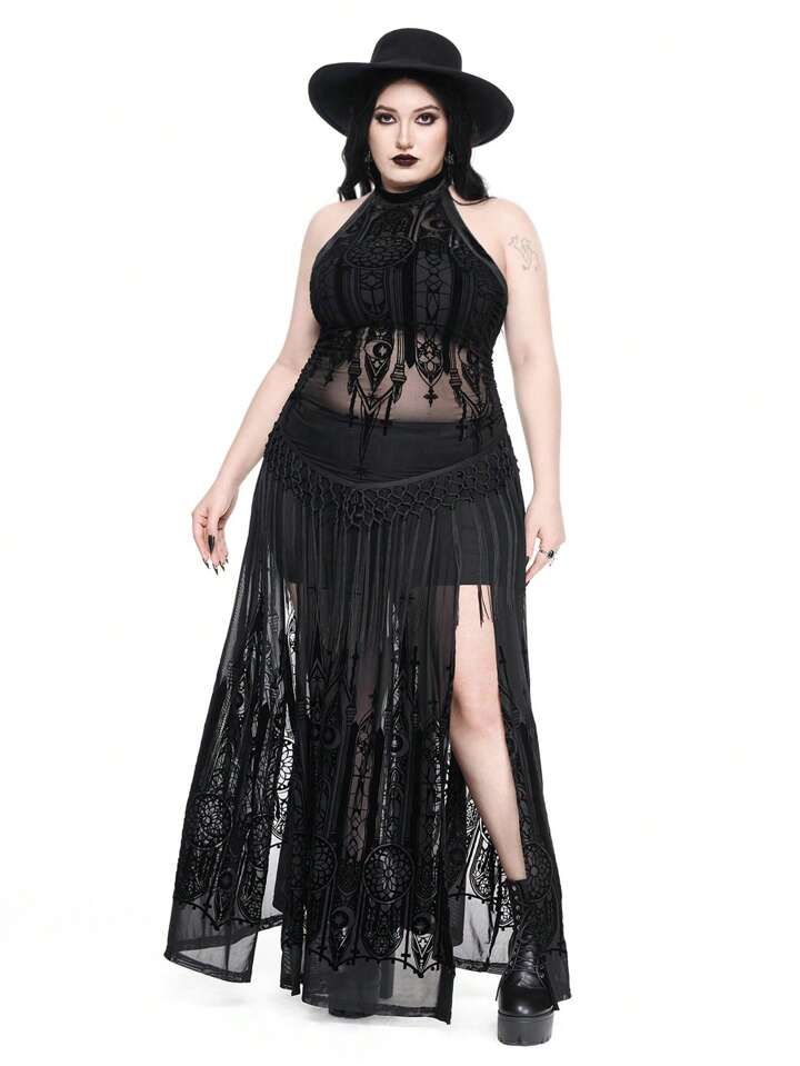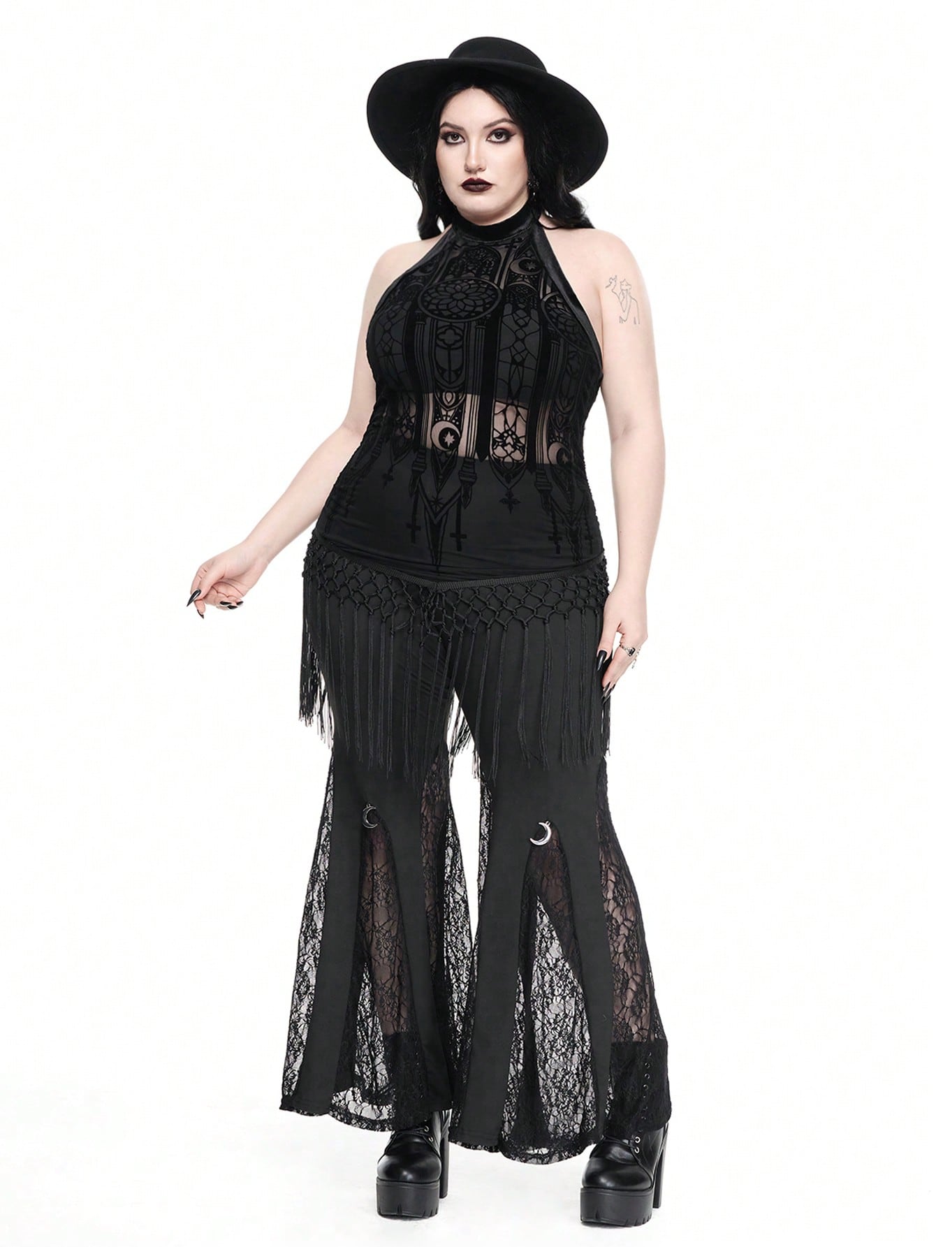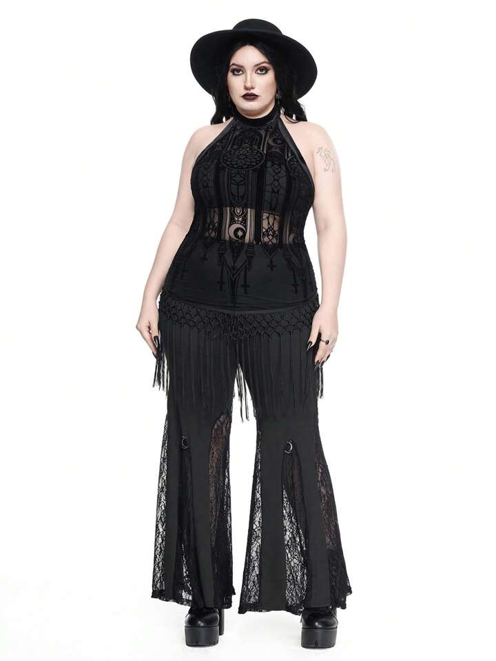 Goth ملابس علوية كبيرة الحجم بتصميم جوتي جذاب مزخرفة بالخيوط المنسدلة