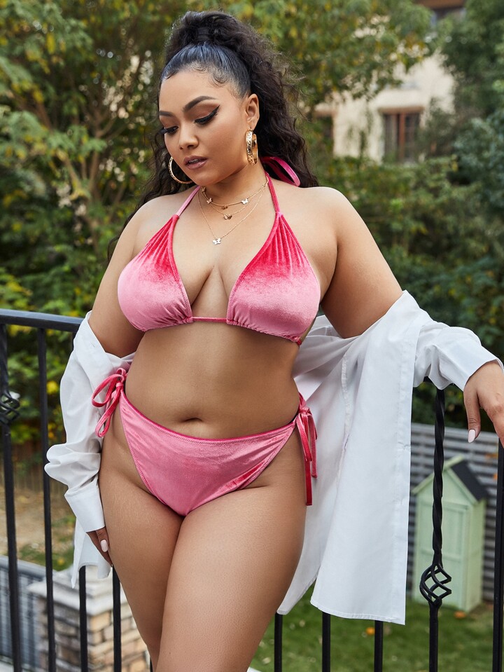 3قطعة مجموعة بكيني ربطة جانبية مثلثة مقاس كبير صيفي شاطئي