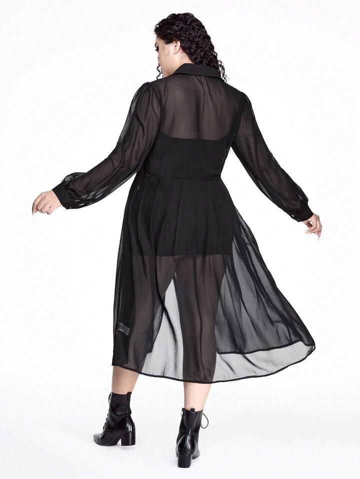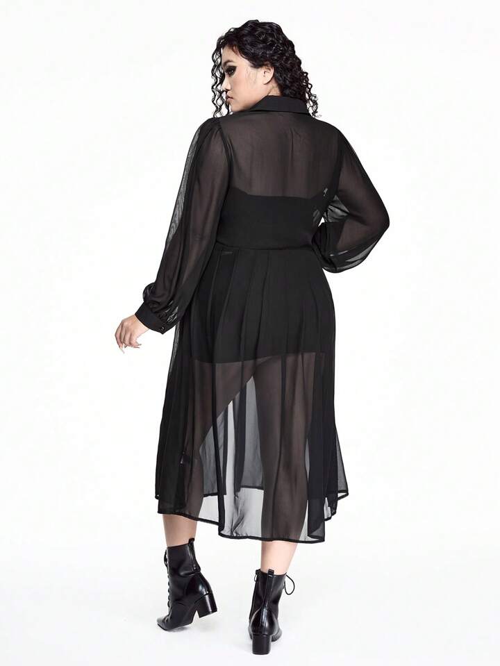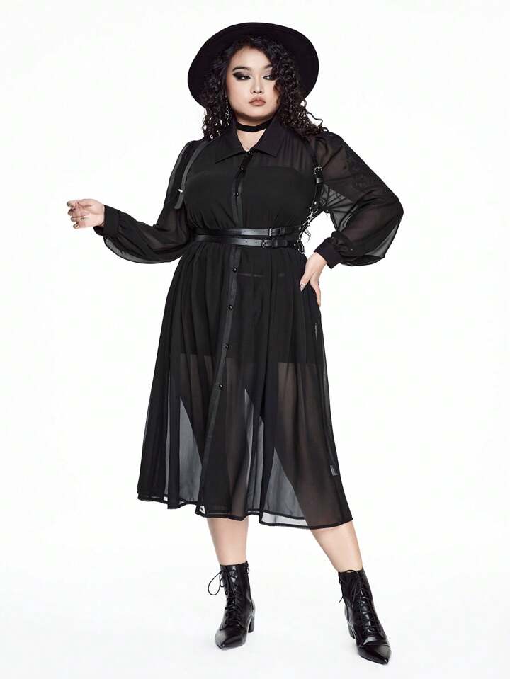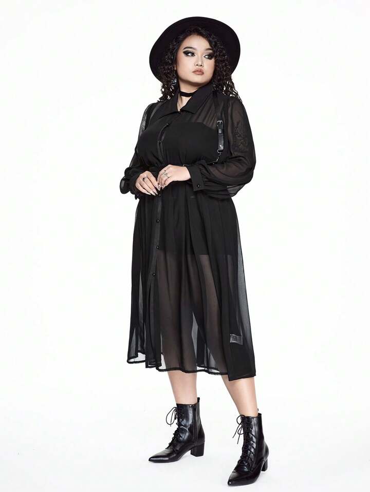 Goth فستان كارديجان شبكي شفاف أسود للنساء ذوات الحجم الكبير بطراز جوثيك بانك