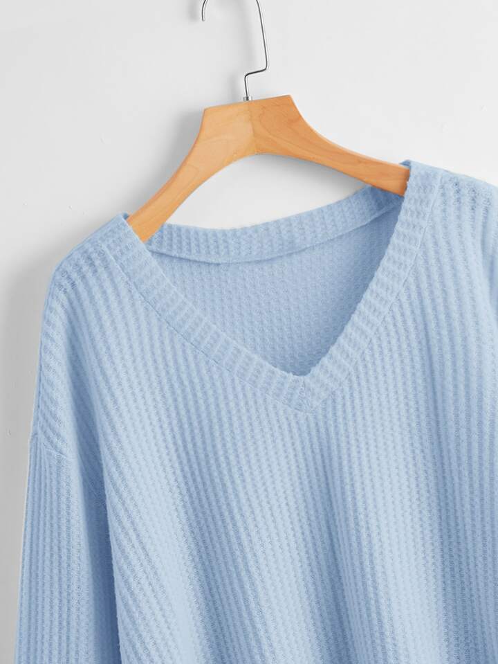 قميص كاجوال بياقة على شكل حرف V وأكمام طويلة مناسب للمقاسات الكبيرة للنساء، مريح للتنقل واللبس اليومي، باللون الأزرق