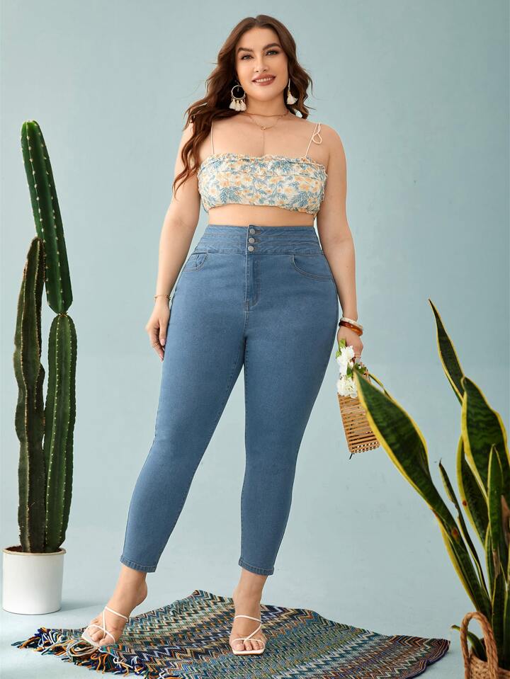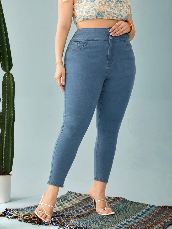 بنطلون جينز سكيني بجيب مائل مقاس كبير