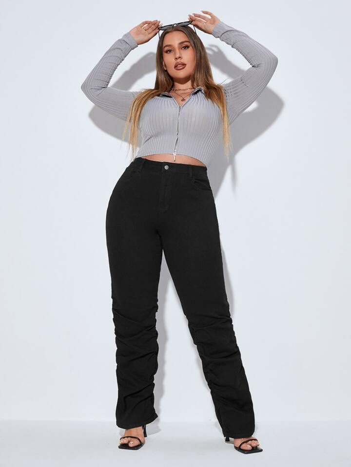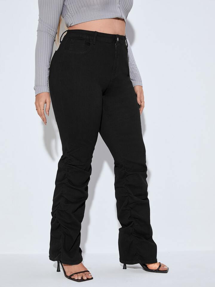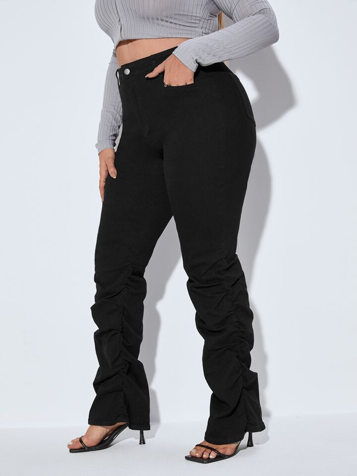 بنطلون جينز جيب مائل طيات مقاس كبير