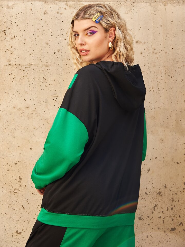 بلوزة ثقيلة مقاسات كبيرة الرباط حاجز اللون شعار كاجوال