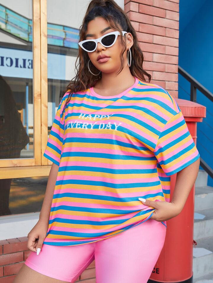 مقاس كبير تي شيرت طباعة الشعار مخطط