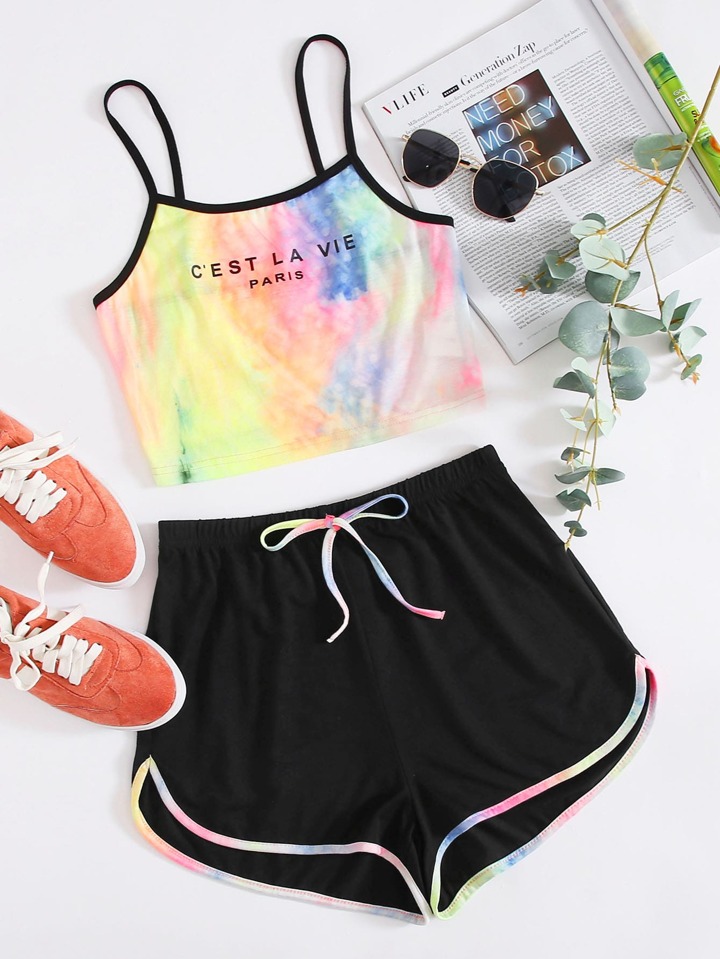 مقاس كبير بطباعة شعار صبغ متعادل صدرية كامي و شورت دولفين