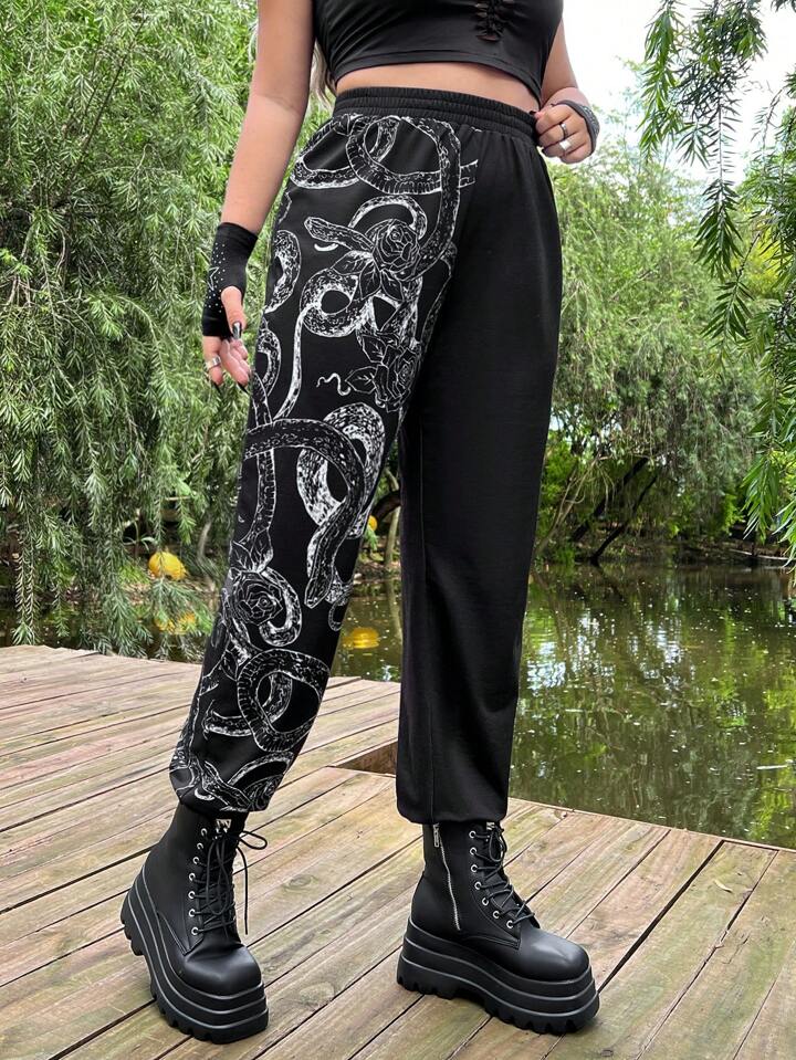 بناطيل رياضي طباعة الأفعى مقاس كبير
