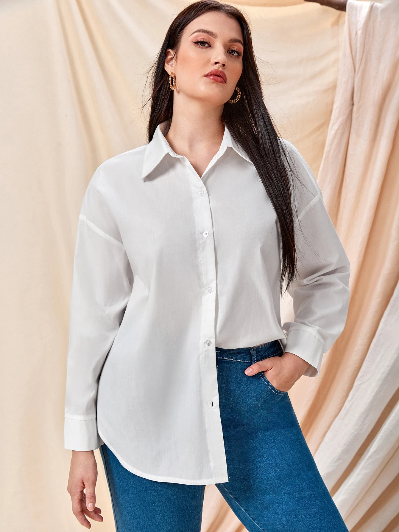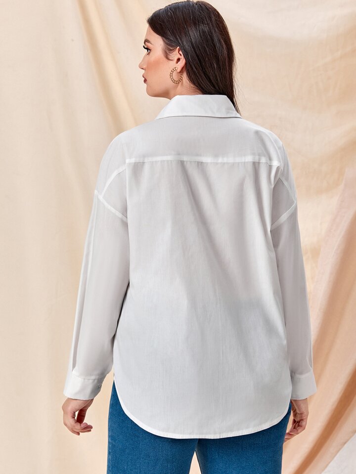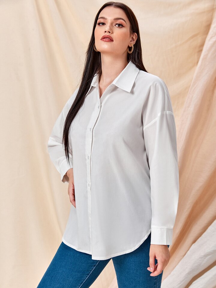قميص منخفض الكتف بأزرار بلون موحد مقاس كبير