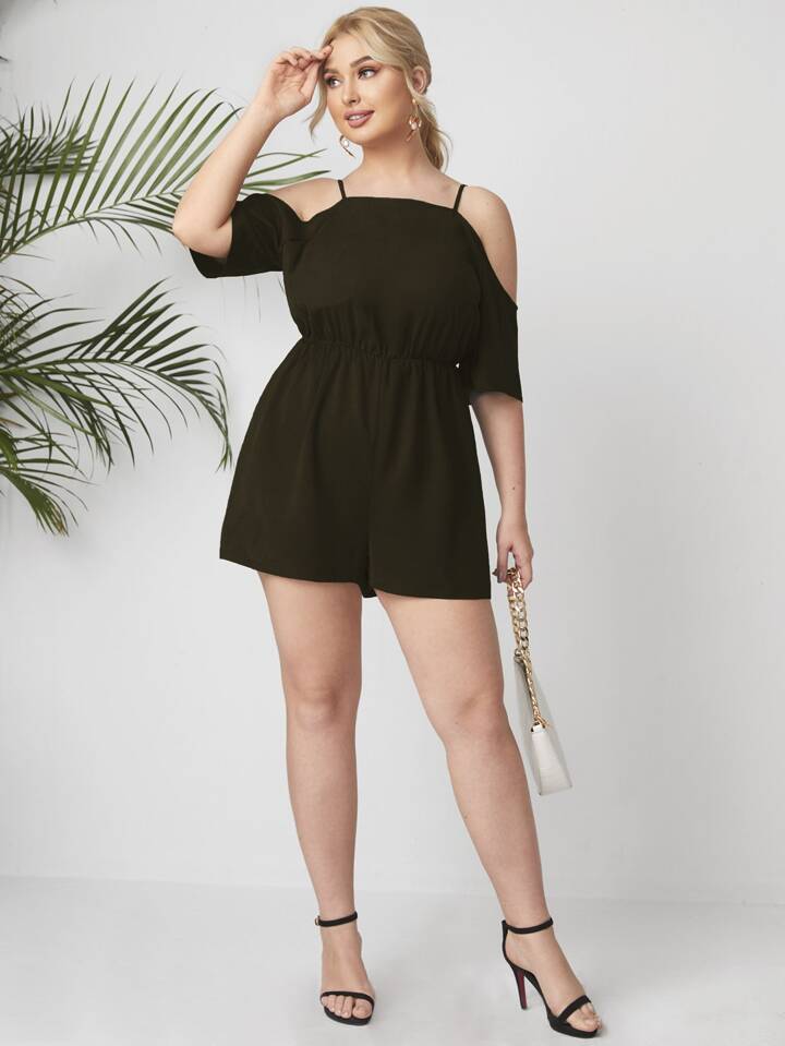 رومبير مكشوف الاكتاف بلون موحد مقاس كبير