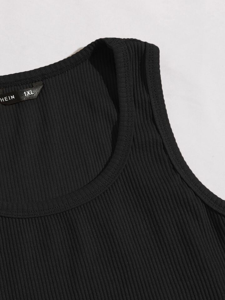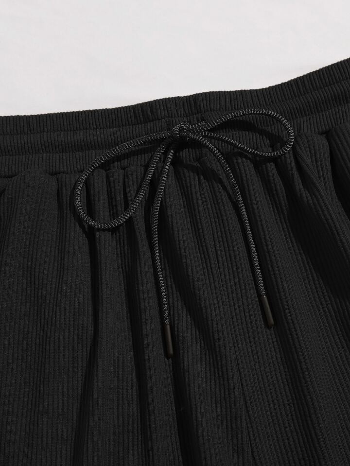 طقم بنطلون برباط خصر مع لباس علوي تانك قصير بلون موحد مقاس كبير