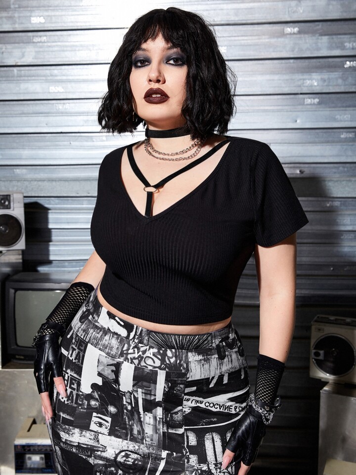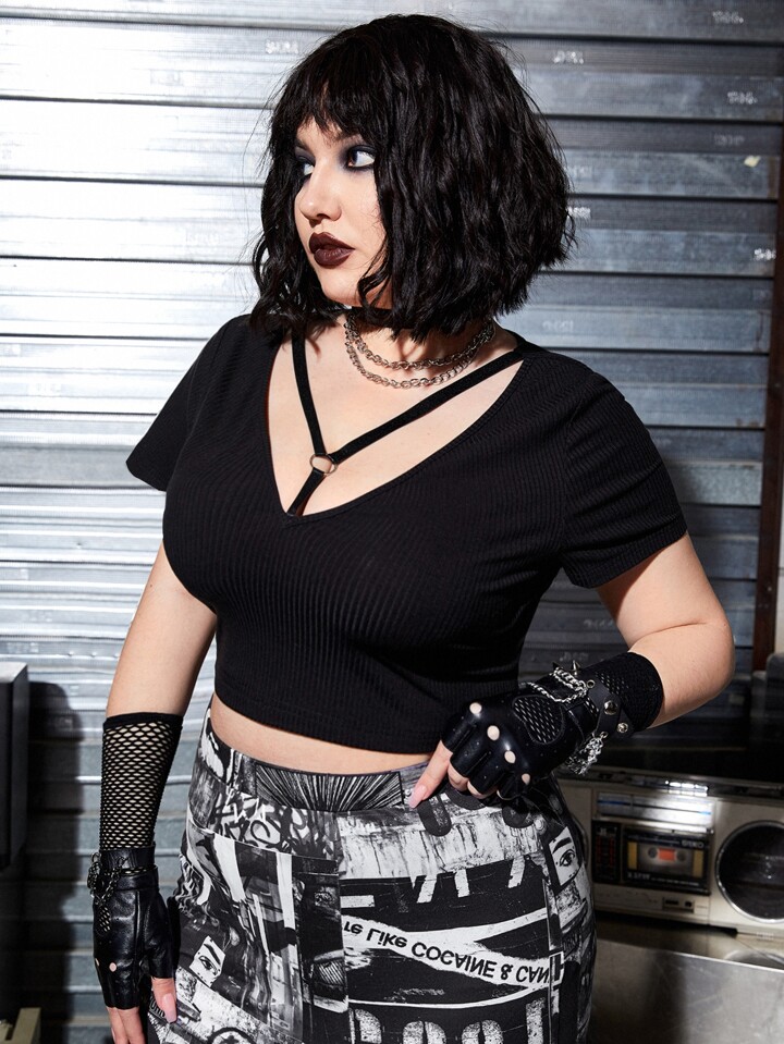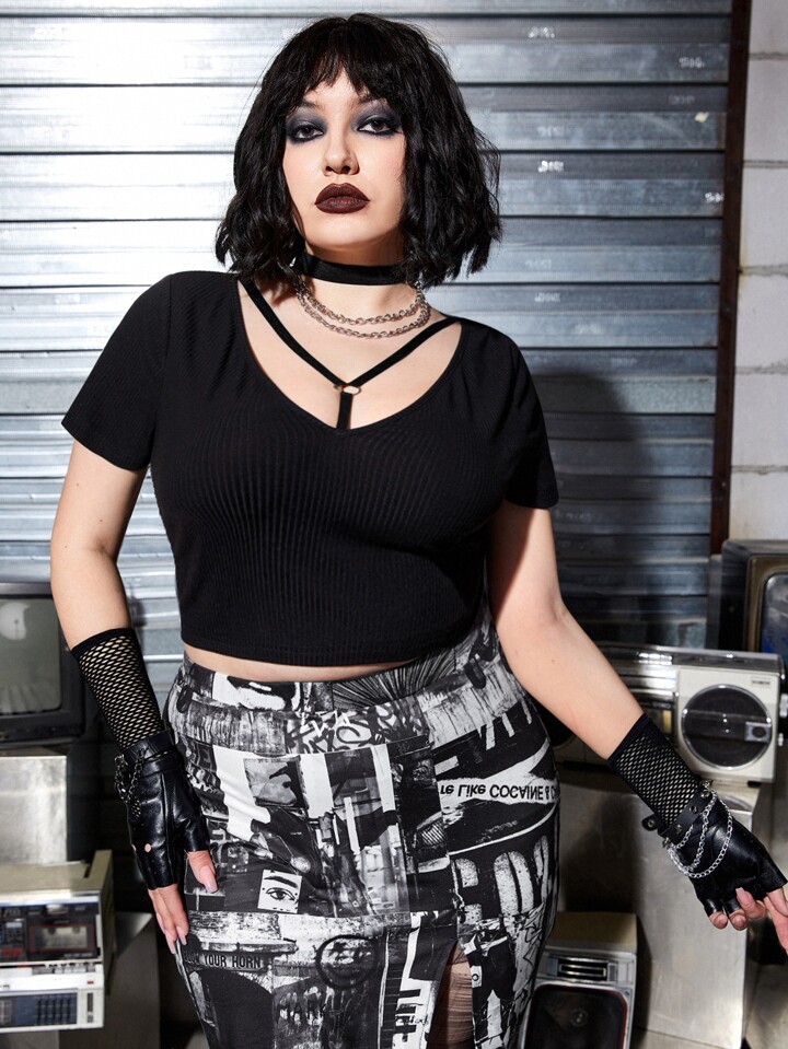 تي شيرت قصير موحدة اللون مقاس كبير