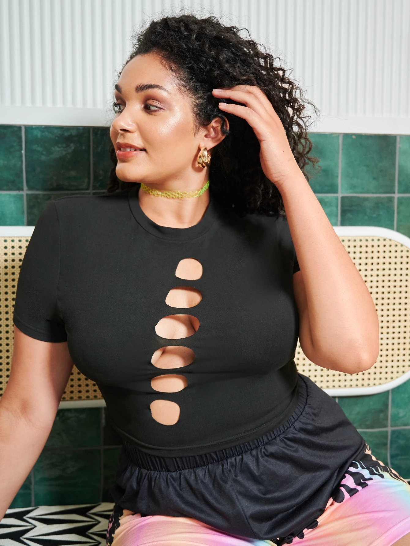 تي شيرت قصير مقصوص بلون موحد مقاس كبير