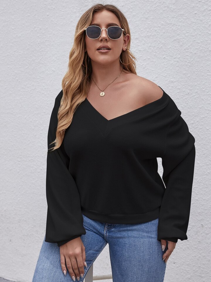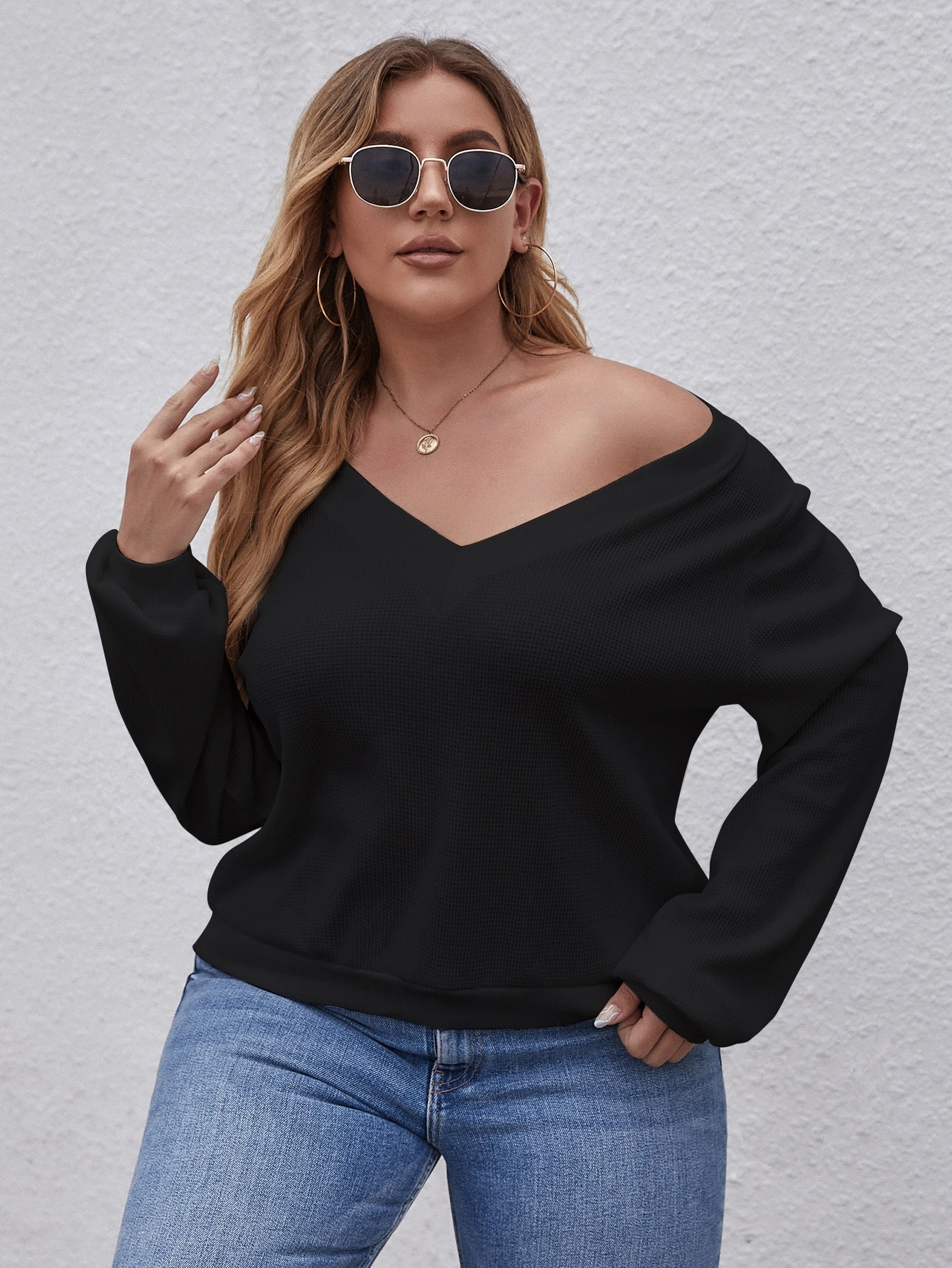 قميص ثقيل مقاس كبير منخفض الكتف وبلون موحد