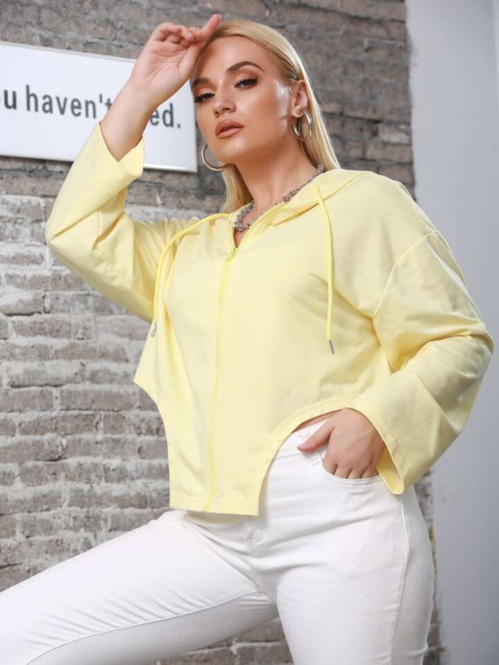 بلوزة ثقيلة مقاسات كبيرة غير متساوي او غير متماثل الرباط سستة الصاف كاجوال