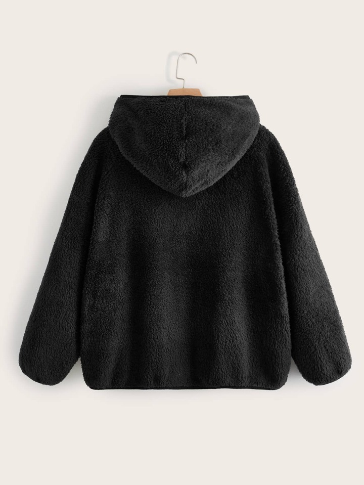 جاكيت تيدي موحدة اللون مفتوح امامي قبعة مقاس كبير