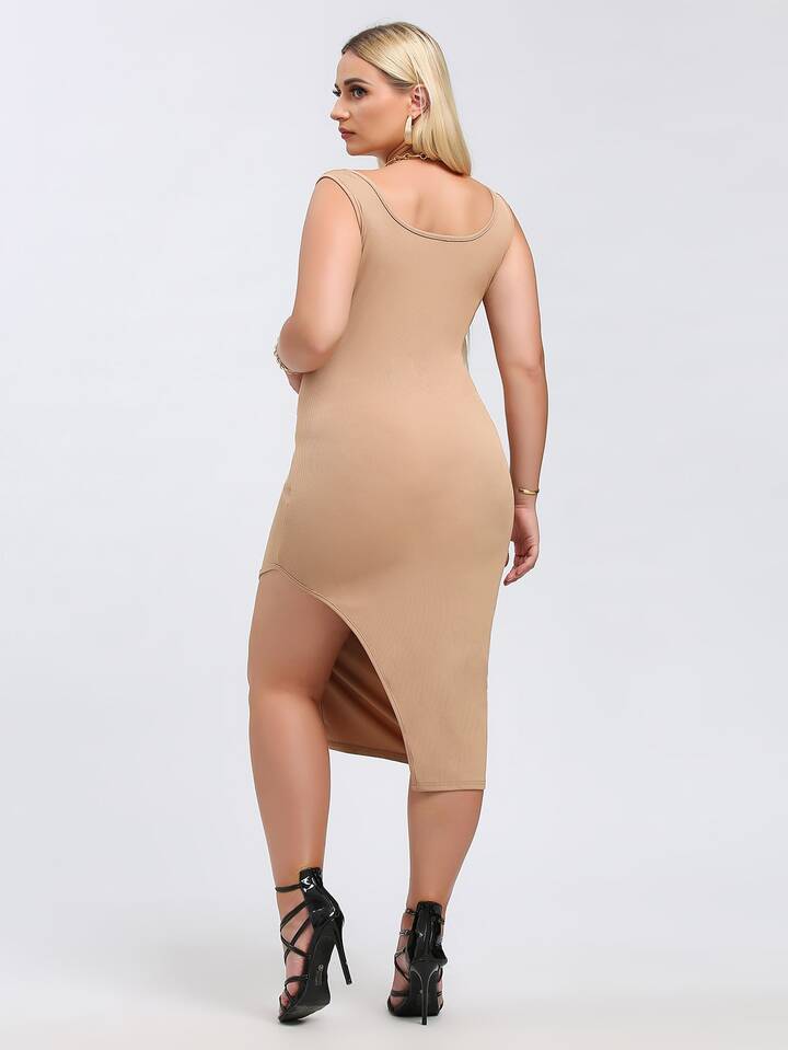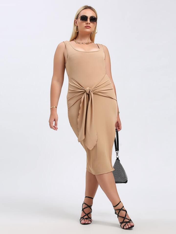 فساتين مقاسات كبيرة غير متساوي او غير متماثل بربطة أمامية الصاف كاجوال