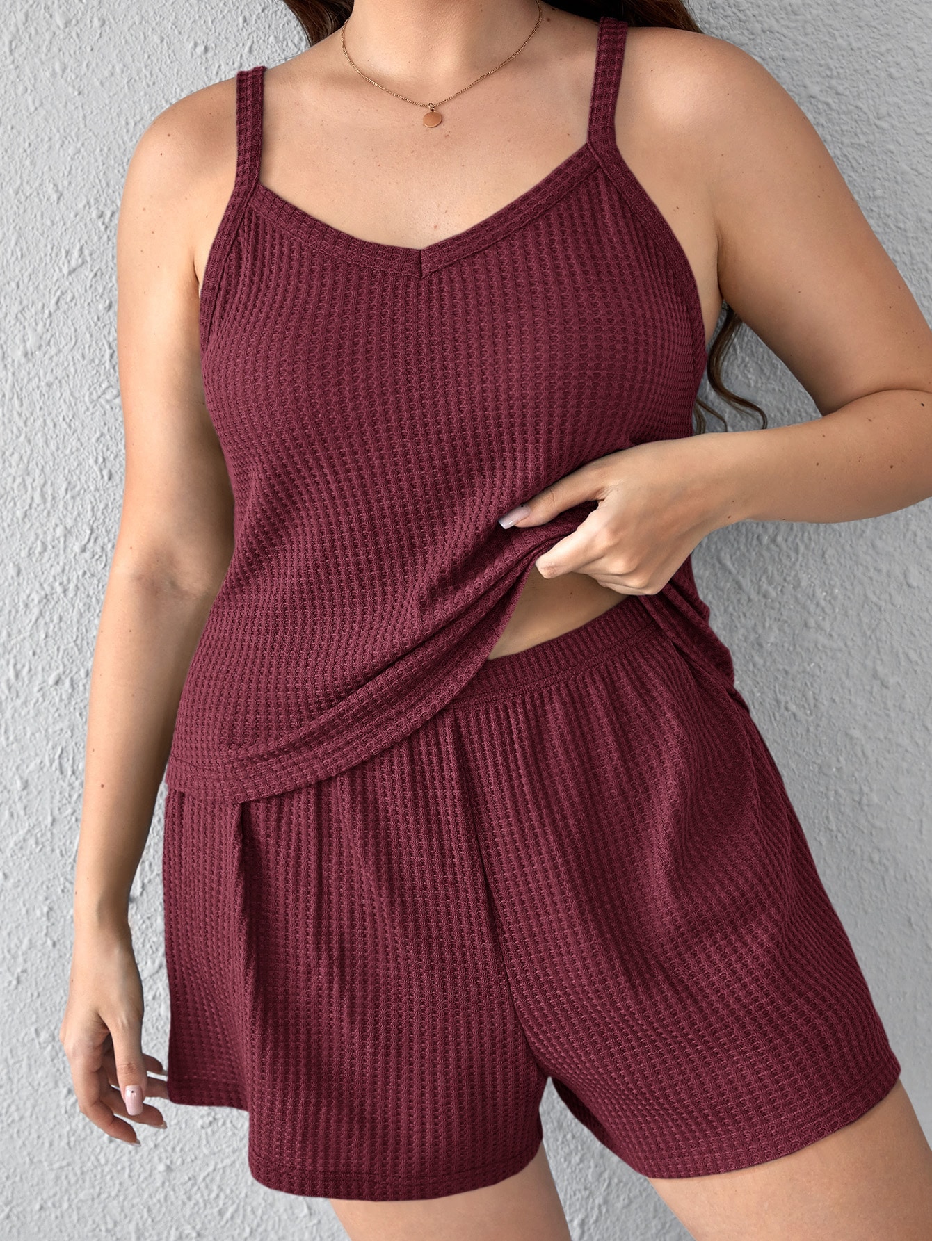 طقم بيجامة موحدة اللون منسوجة وافل مقاس كبير
